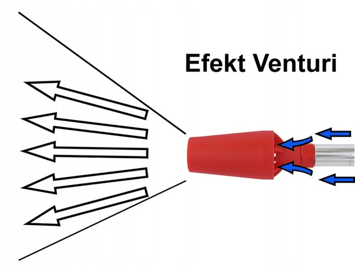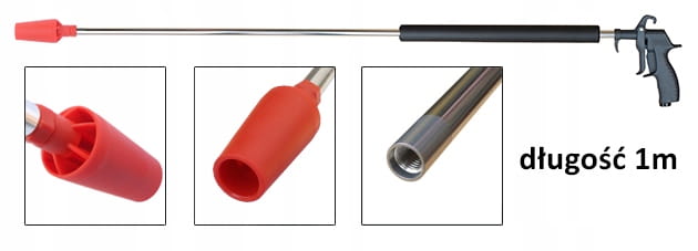 Pistolet do dmuchania o długości 1m, z dodatkową końcową dyszą Venturiego poprawiającą efektywnośc pracy.