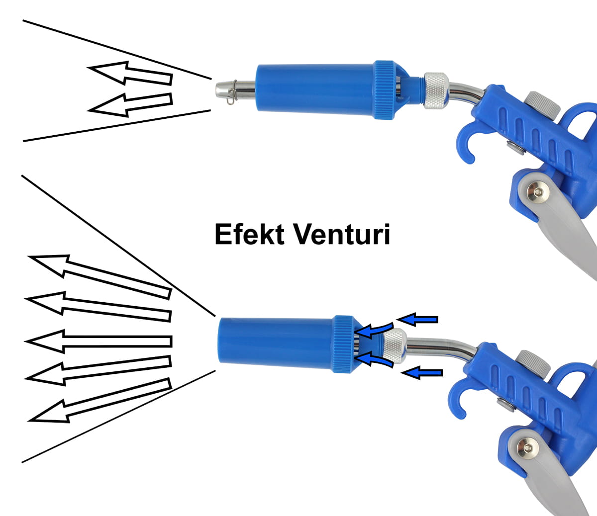 - po przesunięciu dyszy Venturiego pistolet może służyć do odmuchiwania punktowego,