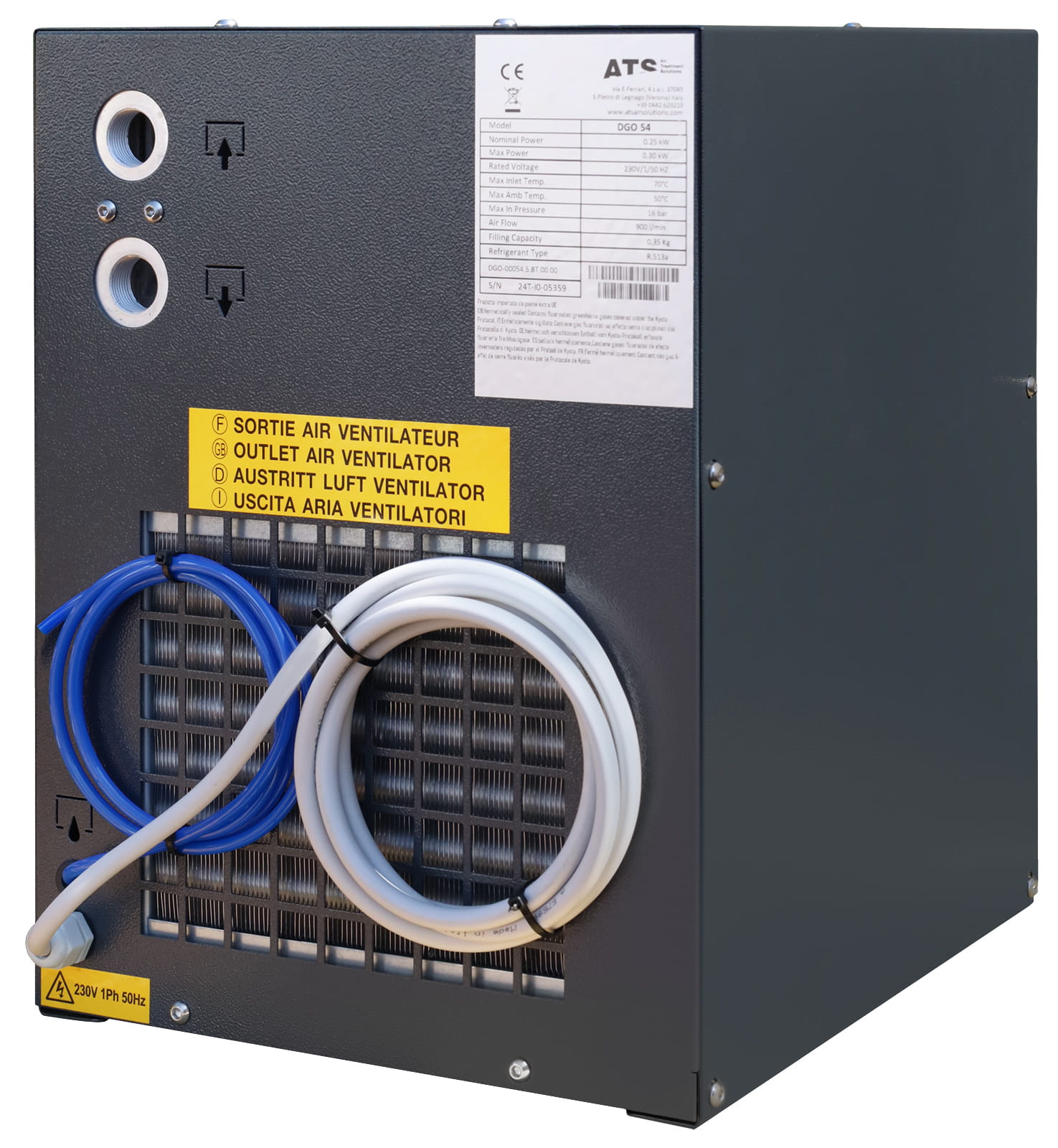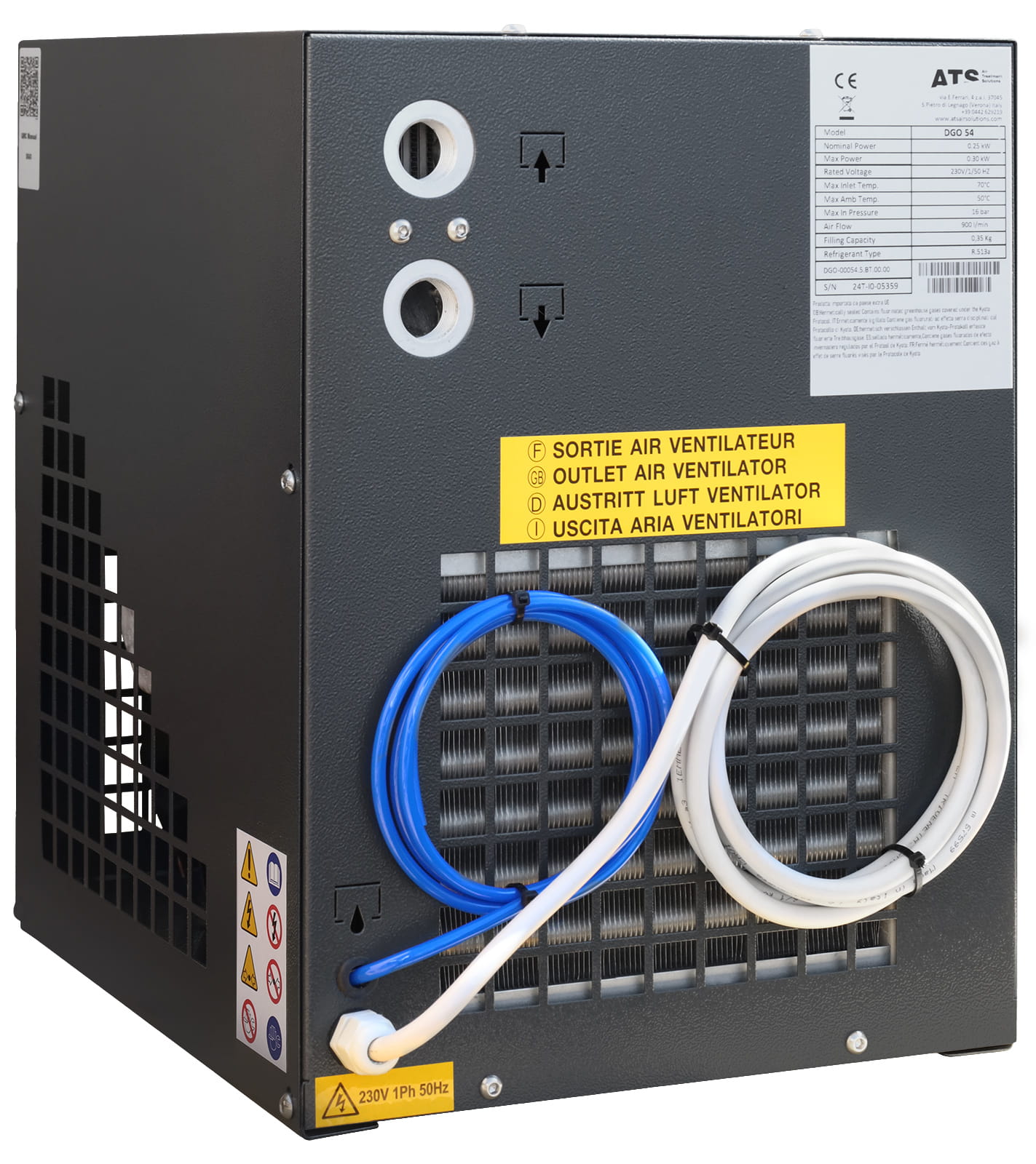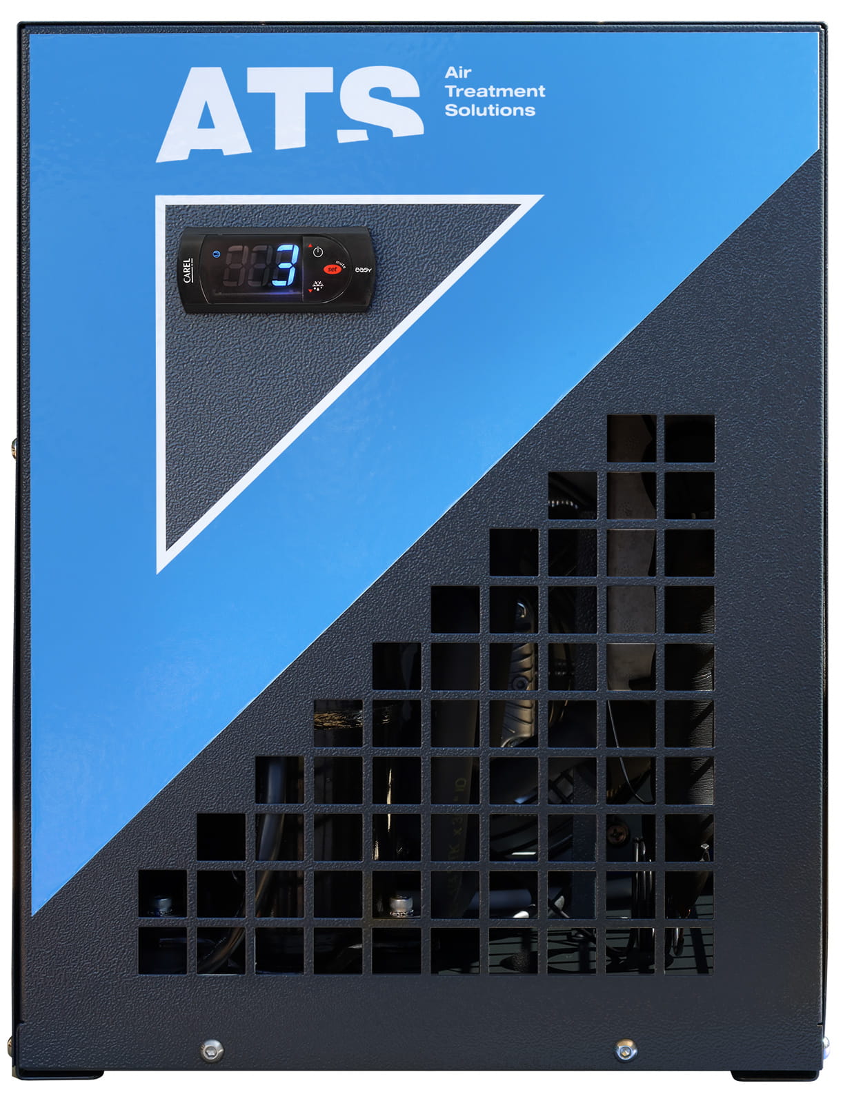 Osuszacze chłodnicze włoskiej marki "ATS" poprzez wbudowany układ chłodniczy separują parę wodną zawartą w sprężonym powietrzu. Punkt rosy osiągany podczas pracy urządzenia wynosi 3°C z tolerancją 1°C.