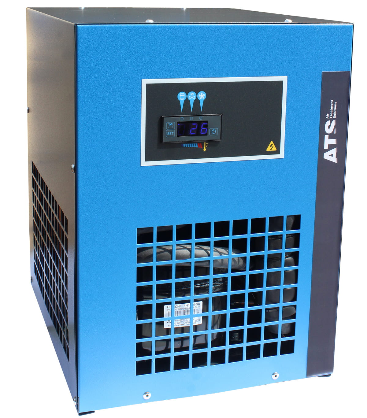 Osuszacze chłodnicze włoskiej marki "ATS" poprzez wbudowany układ chłodniczy separują parę wodną zawartą w sprężonym powietrzu. Punkt rosy osiągany podczas pracy urządzenia wynosi 3°C z tolerancją 1°C.