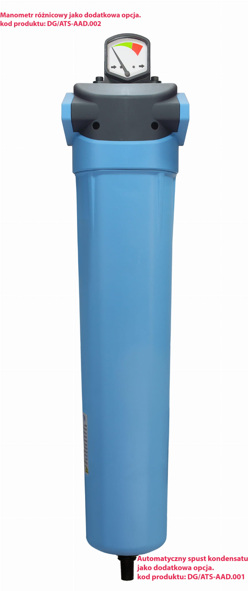 Dodatkowo filtr można wyposażyć w spust kondensatu (ręczny lub automatyczny) oraz manometr różnicowy.