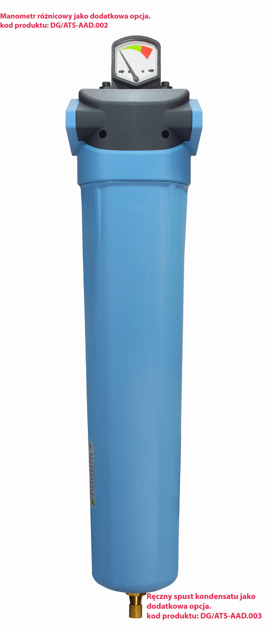 Dodatkowo filtr można wyposażyć w spust kondensatu (ręczny lub automatyczny) oraz manometr różnicowy.