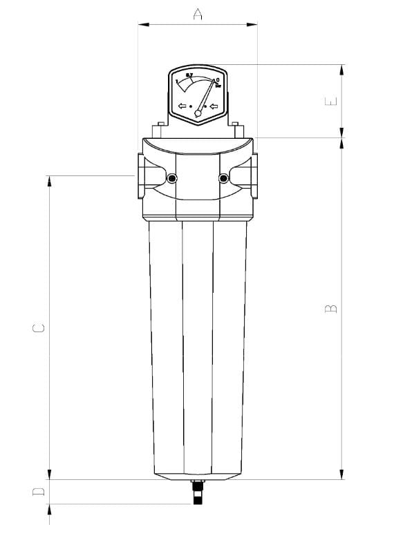 Dodatkowo filtr można wyposażyć w spust kondensatu (ręczny lub automatyczny) oraz manometr różnicowy.