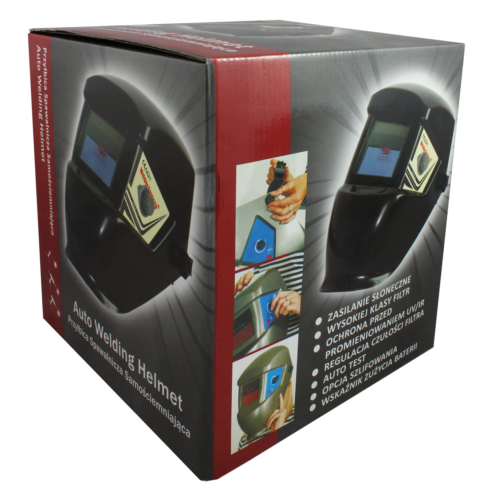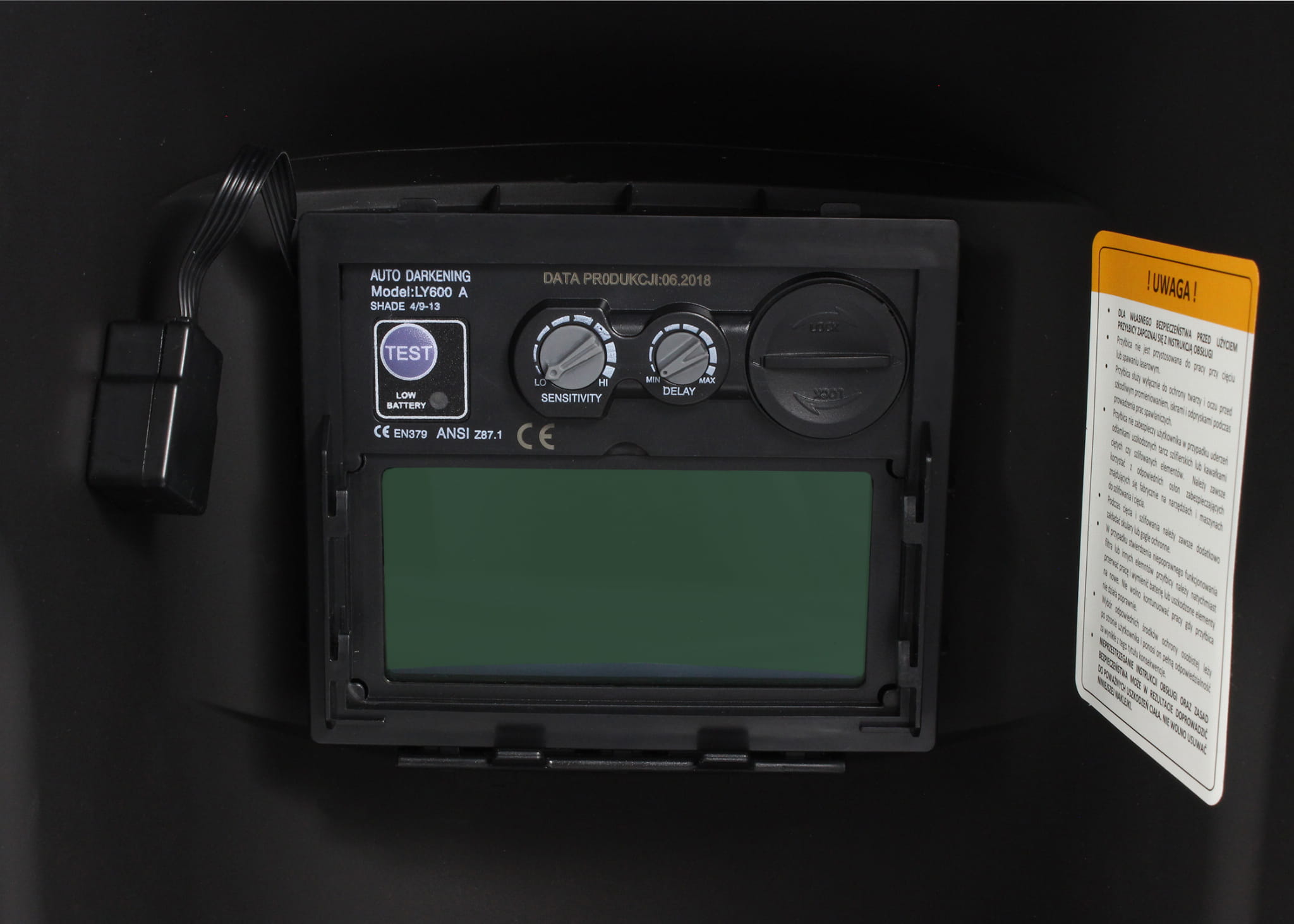Przyłbica posiada regulację poziomu zaciemniania, opcję TEST, wybór czasu zwłoki i czułości oraz dodatkowe ustawienie GRIND przeznaczone do szlifowania.