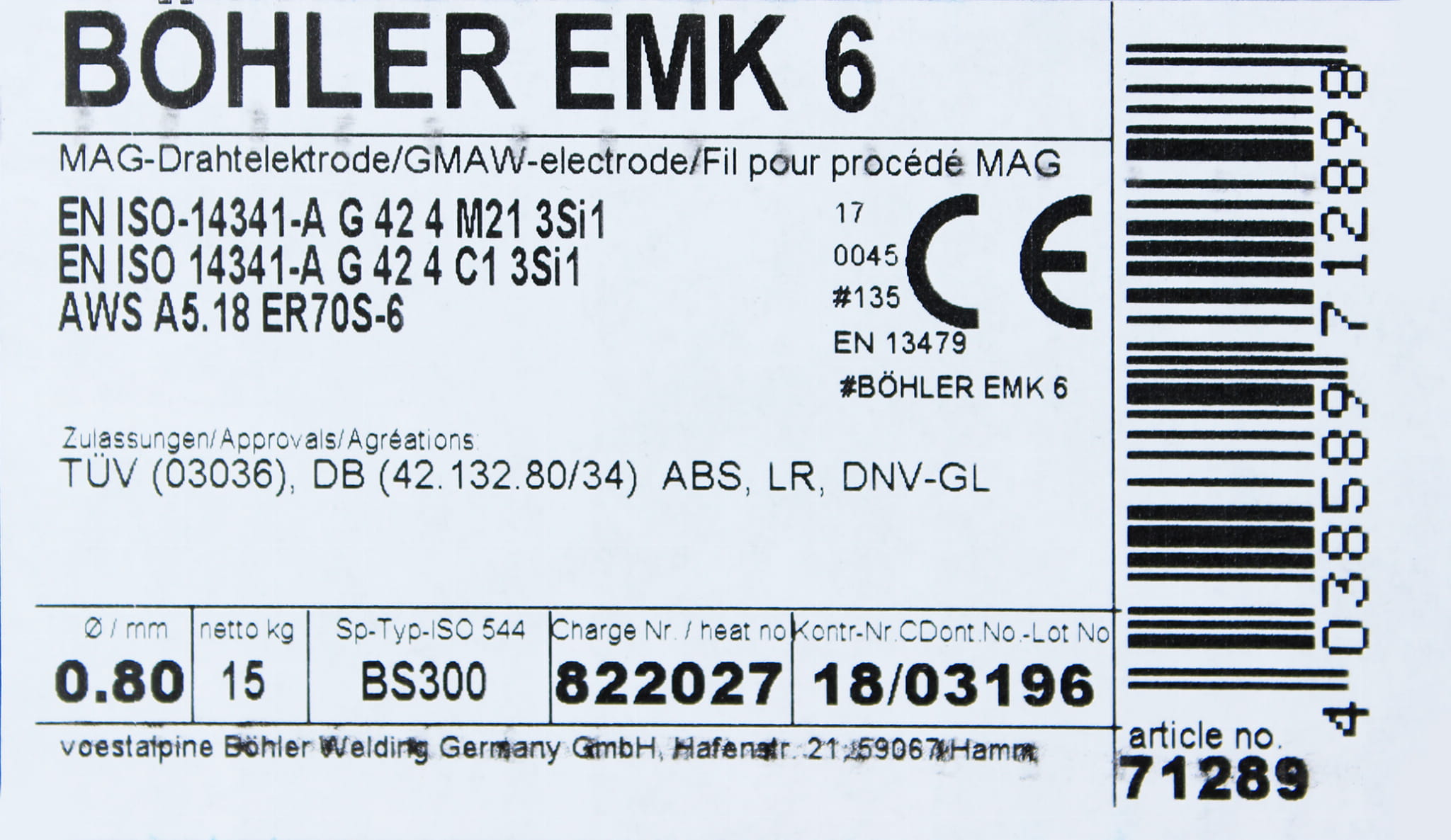 BOHLER MIG MAG WELDING WIRE G3Si SG2 0.8x15kg EMK6
