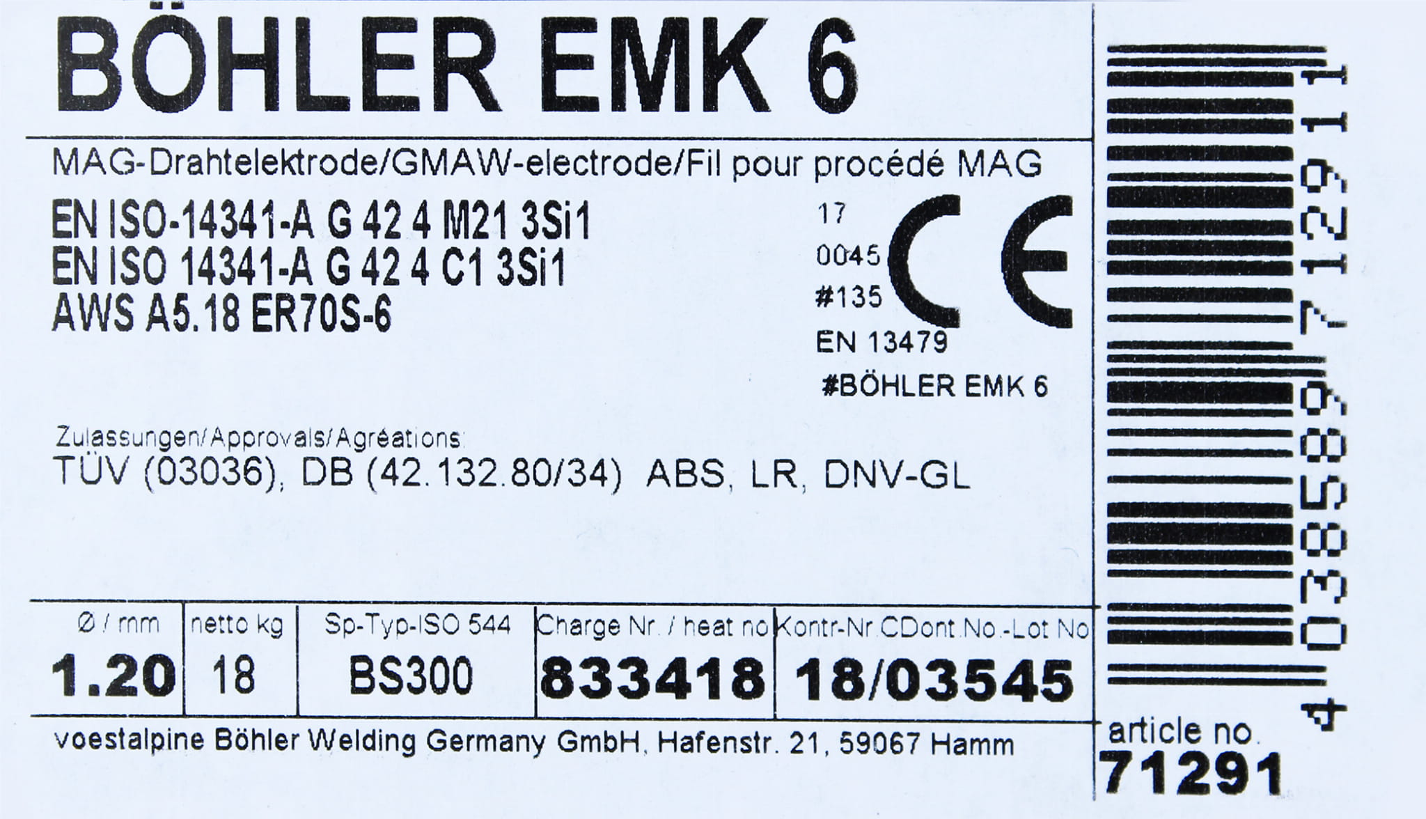BOHLER MIG MAG WELDING WIRE G3Si SG2 1.2x18kg EMK6