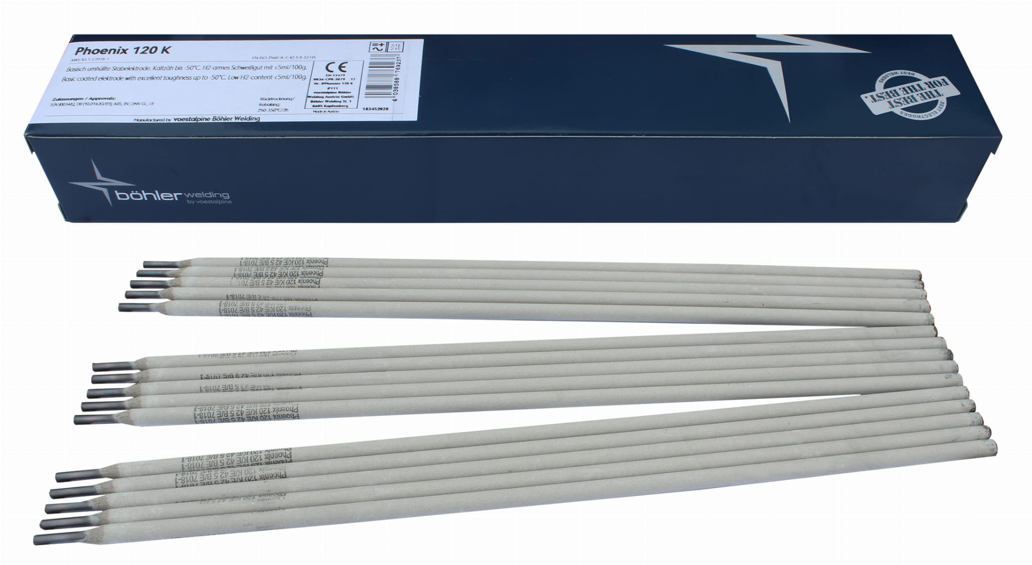 Niestopowe elektrody otulone zasadowe Phoenix 120 K o bardzo dobrych właściwościach spawania. Charakteryzują się bardzo czystym, kriogenicznym metalem spoiny przy temperaturze do -50°C. Nadają się do spawania stali konstrukcyjnej, kotłów, zbiorników, statków, mostów i produkcji pojazdów. W szczególności nadają się do spawania drobnoziarnistych stali konstrukcyjnych. Doskonała spawalność stali stosowanych przy konstrukcjach stalowych pełnomorskich.