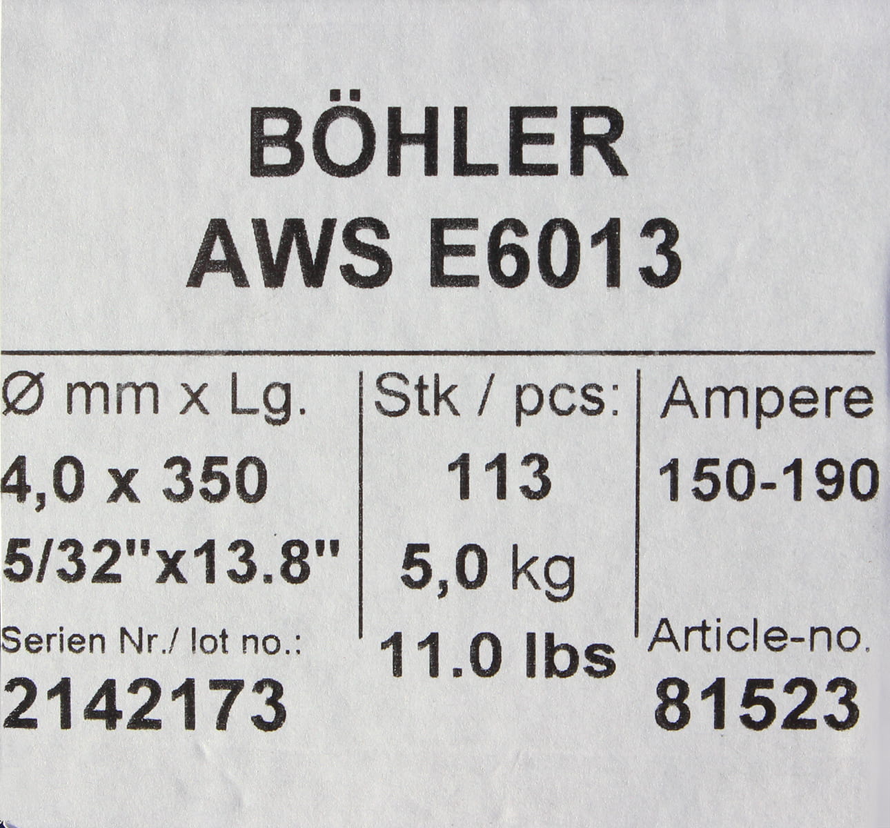 BOHLER MMA RUTILE-CELLULOSIC ELECTRODE E6013 4.0x350MM