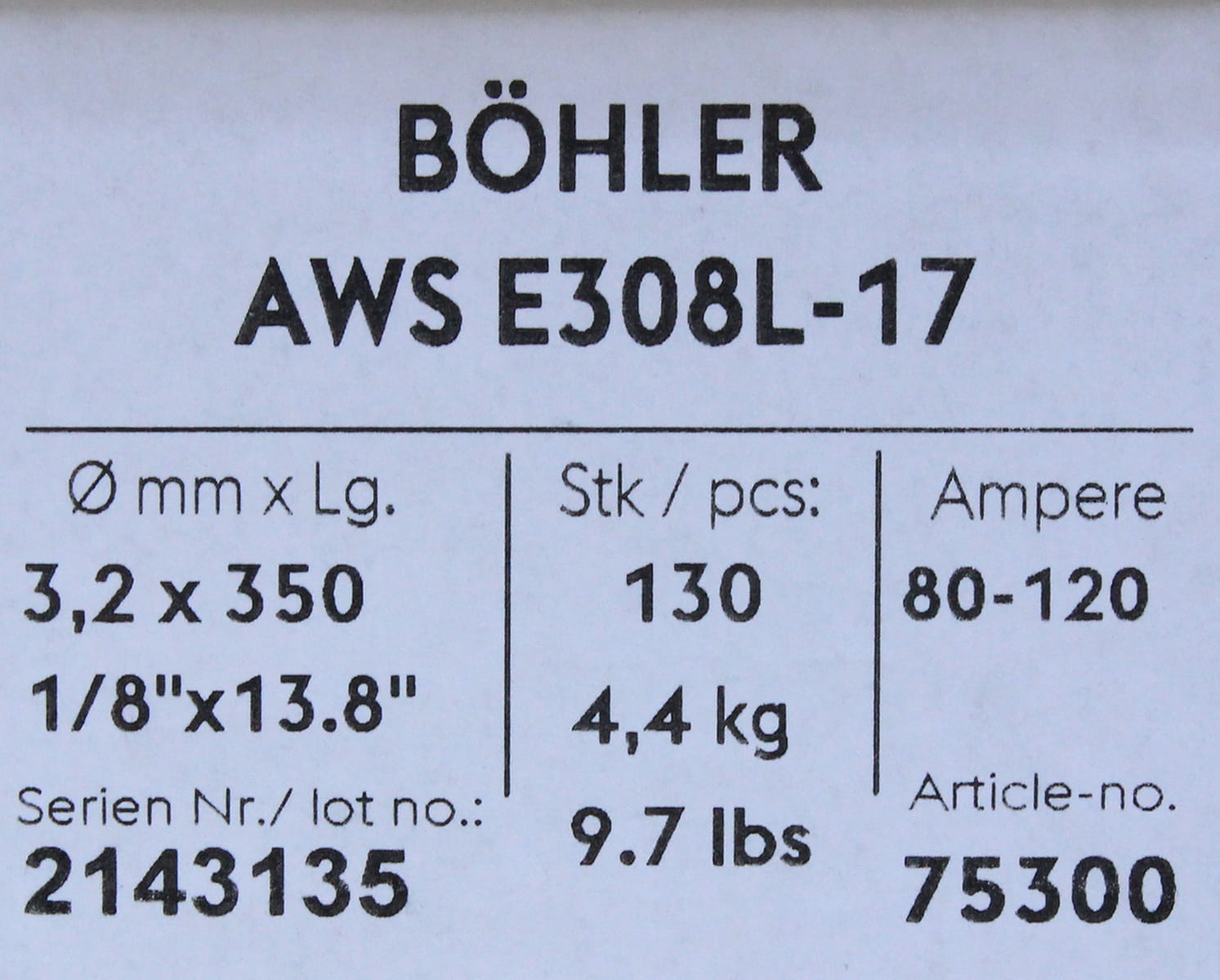 BOHLER MMA RUTILE CHROME-NICKEL ELECTRODE 308L 3.2x350MM