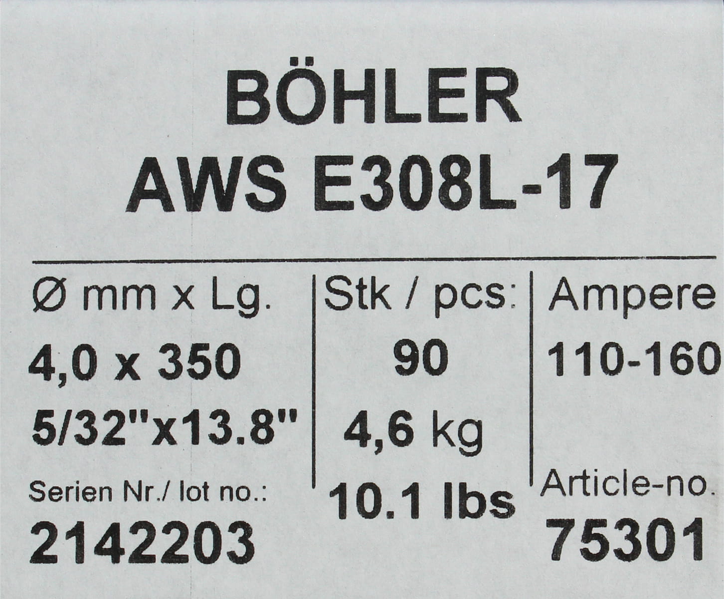 BOHLER MMA RUTILE CHROME-NICKEL ELECTRODE 308L 4.0x350MM