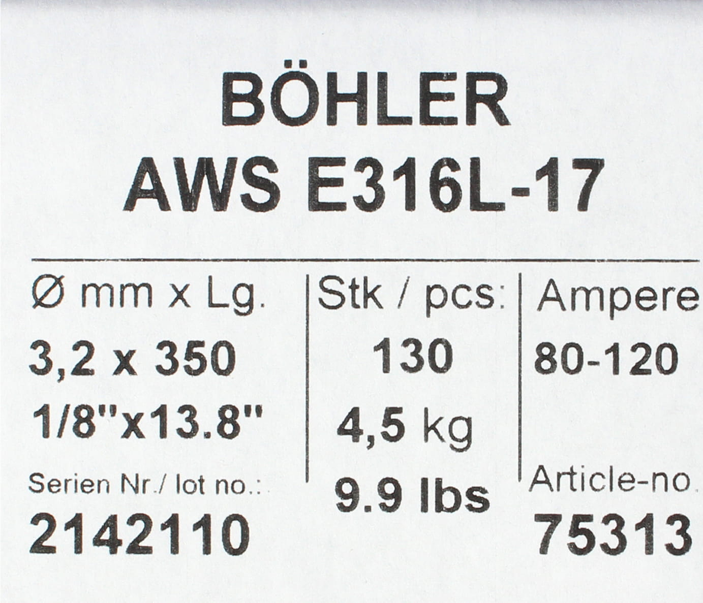 BOHLER MMA RUTILE CHROME-NICKEL ELECTRODE 316L 3.2x350MM