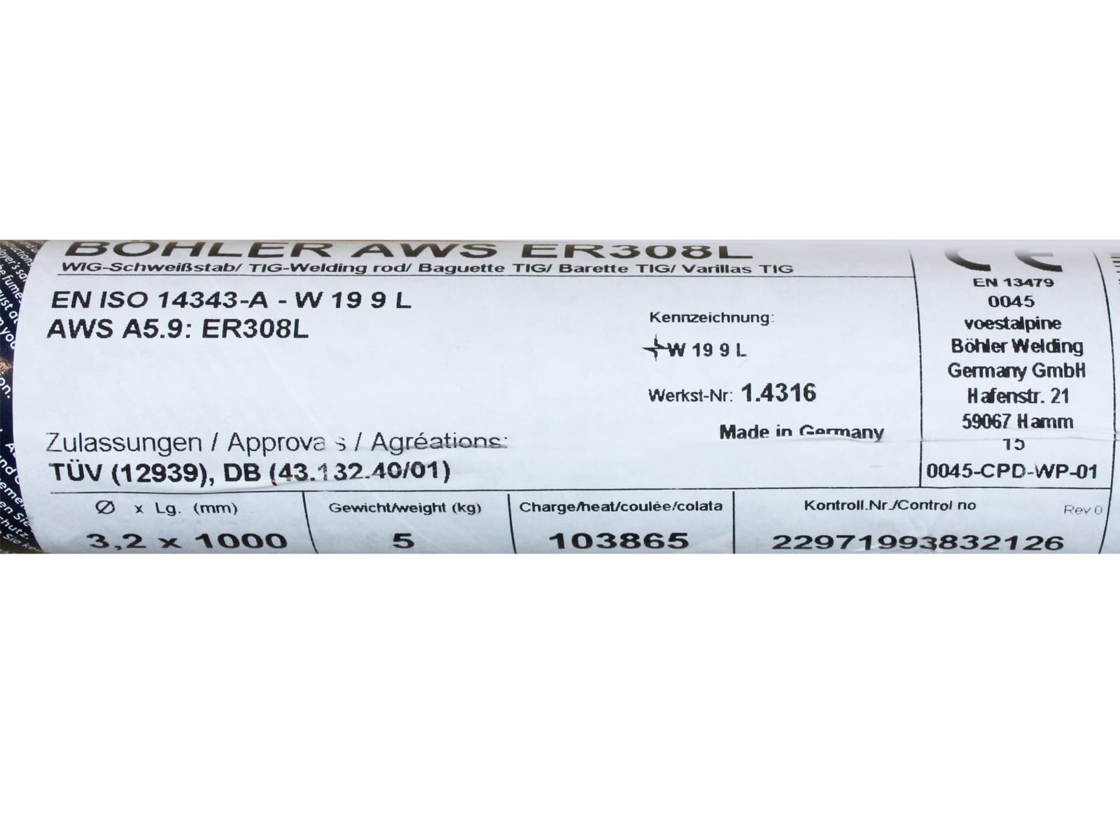 BOHLER TIG CHROME-NICKEL WELDING WIRE 308L 3.2x1000MM