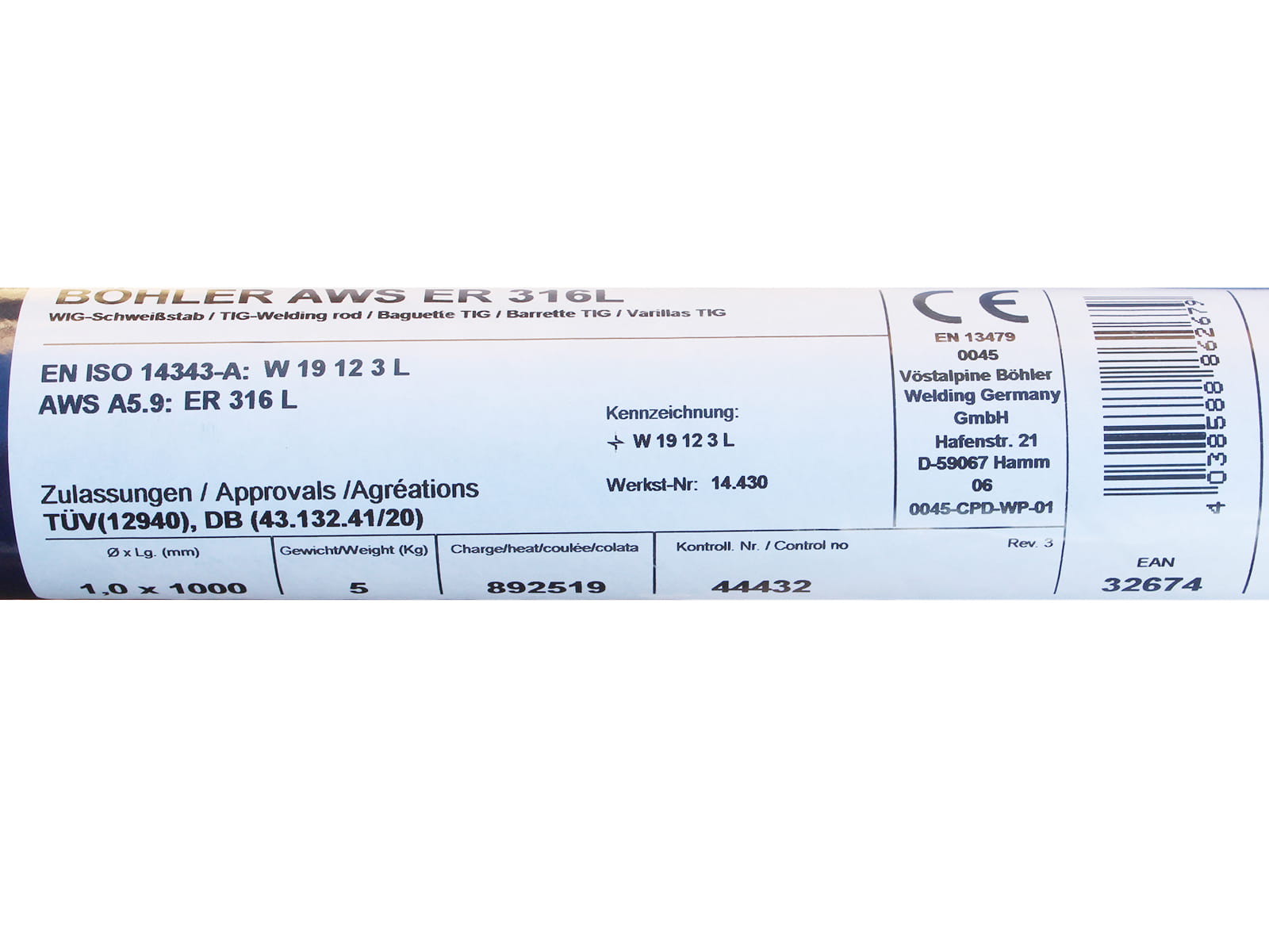 BOHLER TIG CHROME-NICKEL WELDING WIRE 316L 1.0x1000MM