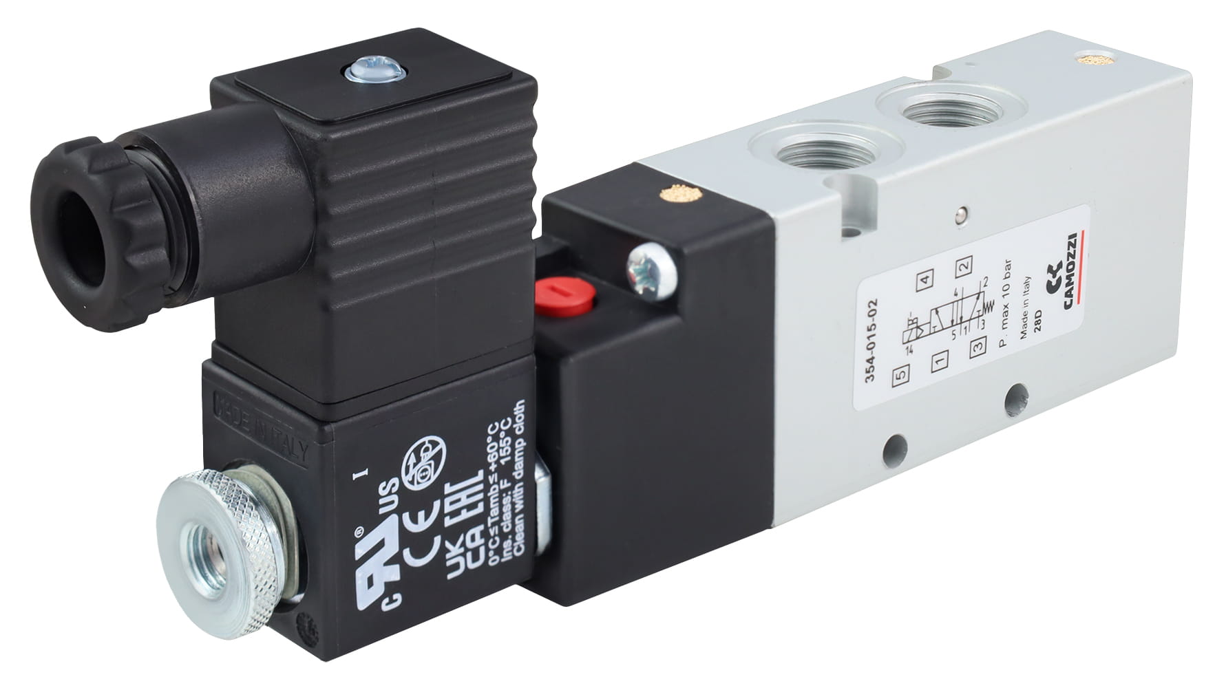 Elektrozawór CAMOZZI 130-354-015-02 5/2 1/4" monostabilny z cewką 48V AC/24V DC i wtyczką