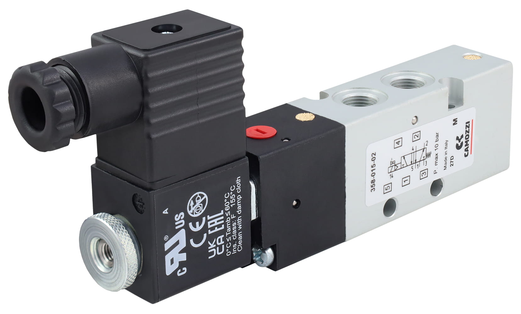Elektrozawór CAMOZZI 130-358-015-02 5/2 1/8" monostabilny z cewką 24V AC/12V DC i wtyczką