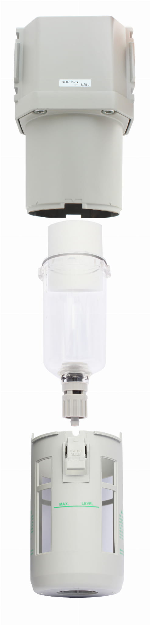 Profesjonalny filtr, o dużej dokładności 5µm, uznanej i cenionej na rynku japońskiej firmy CKD, z spustem ręcznym.
