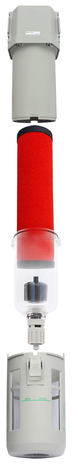 Profesjonalny filtr mgły olejowej M8000, o wysokiej dokładności 0,01µm, uznanej i cenionej na rynku japońskiej firmy CKD, z spustem automatycznym.
