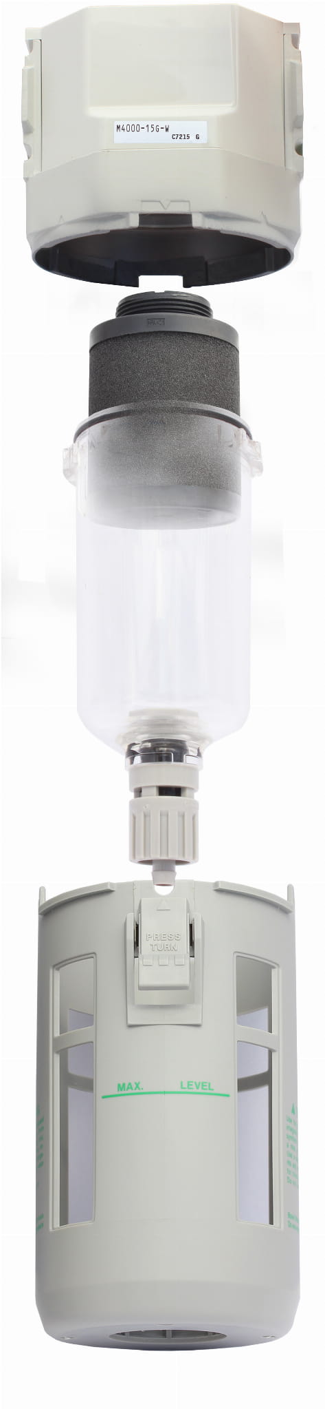 Profesjonalny filtr mgły olejowej M4000, o wysokiej dokładności 0,01µm, uznanej i cenionej na rynku japońskiej firmy CKD, z spustem ręcznym.