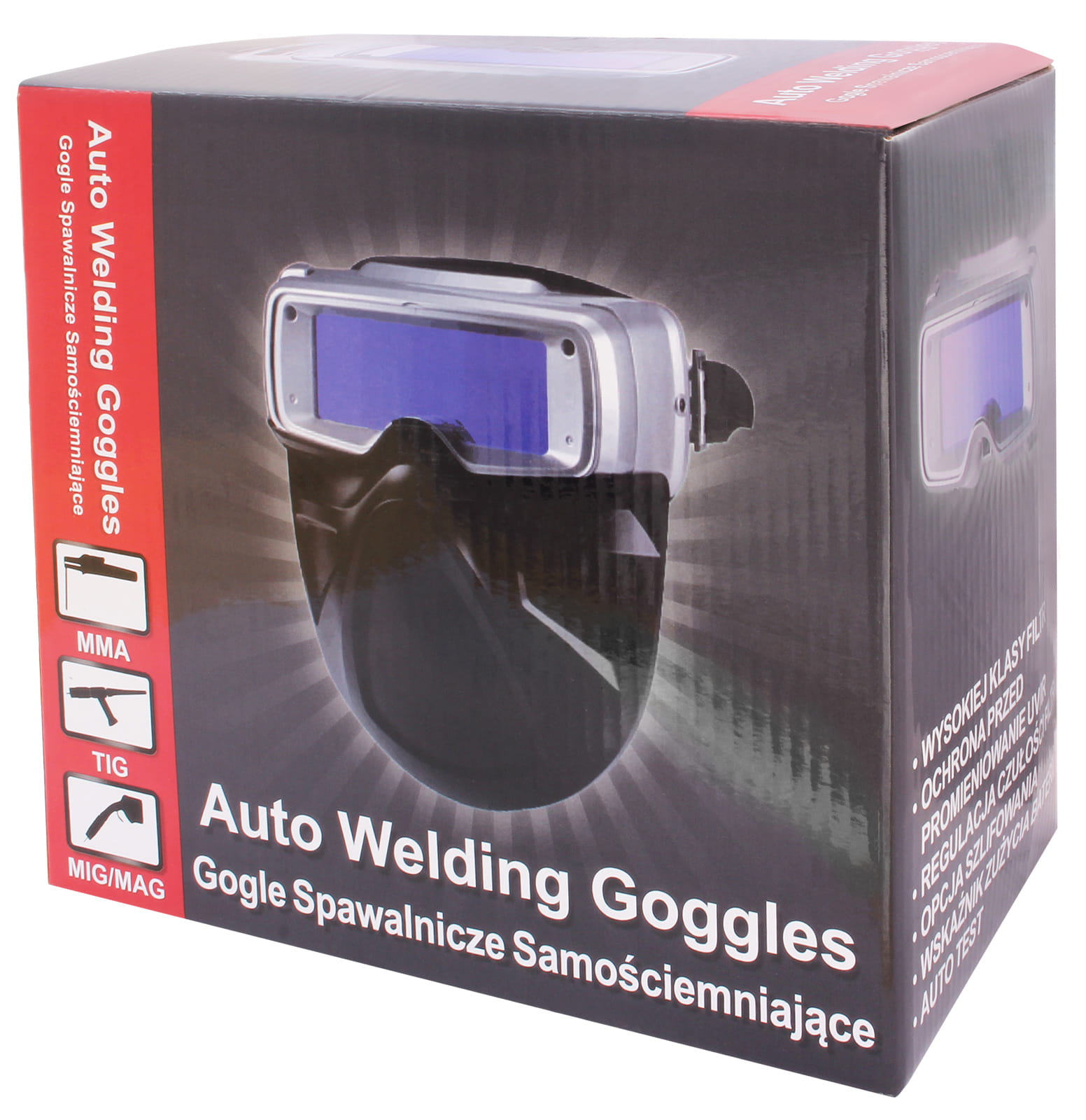 Gogle z automatycznym filtrem ściemniającym, umożliwiają ciągłą pracę bez zdejmowania ich z głowy. Filtr samościemniający przełącza się automatycznie ze stanu rozjaśnionego do stanu zaciemnionego w chwili, kiedy powstaje łuk elektryczny i powraca do stanu rozjaśnionego po zaprzestaniu spawania.