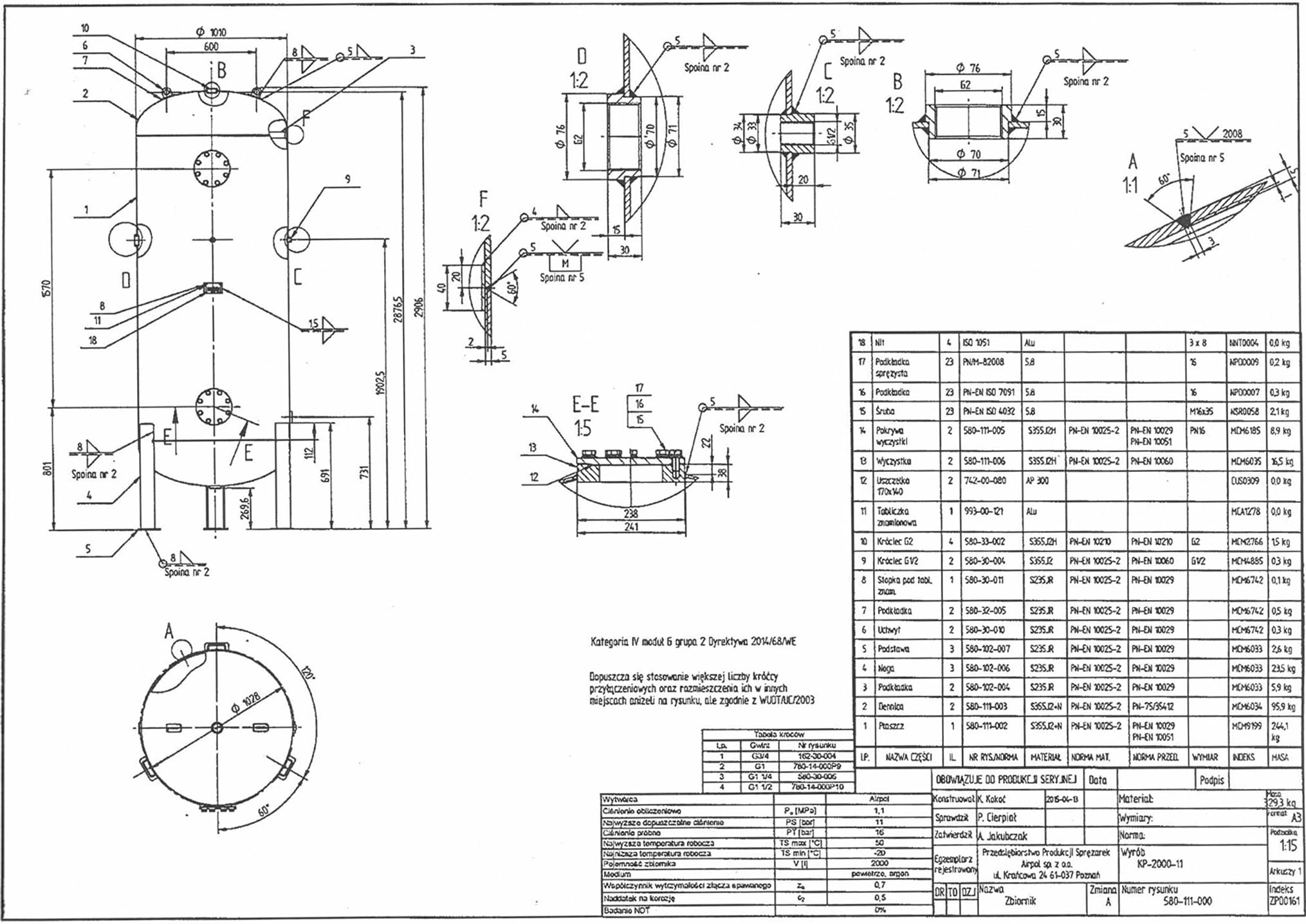 Zbiornik posiada komplet dokumentów wymaganych przez UDT.