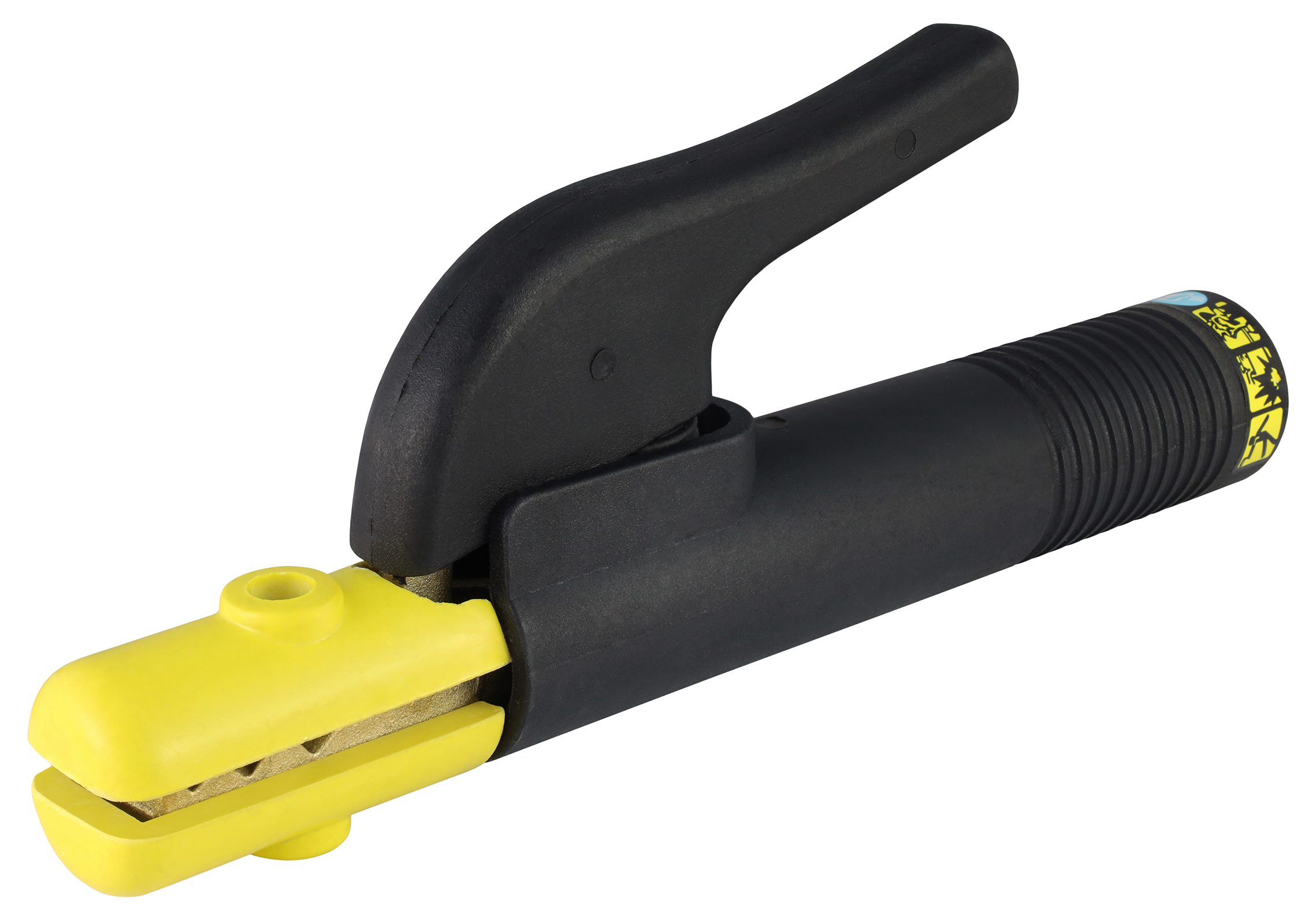 Uchwyt elektrodowy MMA wykonany z solidnego mosiężnego odlewu, który jest izolowany tworzywem odpornym na wysokie temperatury i uszkodzenia mechaniczne. Sprężyna ściskowa jest odpowiednio dobrana i mocno trzyma elektrodę otuloną. Chwytak jest wyprodukowany w taki sposób, że umożliwia dogodne mocowanie elektrody w trzech pozycjach: 40°, 90° i 180°.