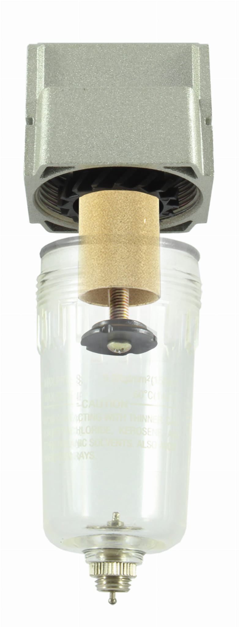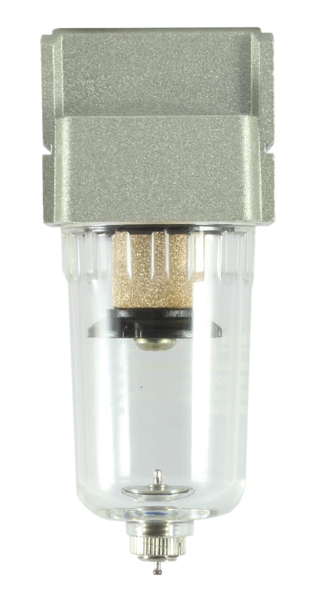 Wkład filtrujący wykonany jest ze spieku brązu zapewnia filtrację mechaniczną cząstek stałych na poziomie 40 mikronów. Wkład filtrujący jest stały i nie wymaga wymiany przez cały czas użytkowania. Obsługa filtra sprowadza się do ręcznego spustu skroplin ze zbiornika zaworem spustowym.