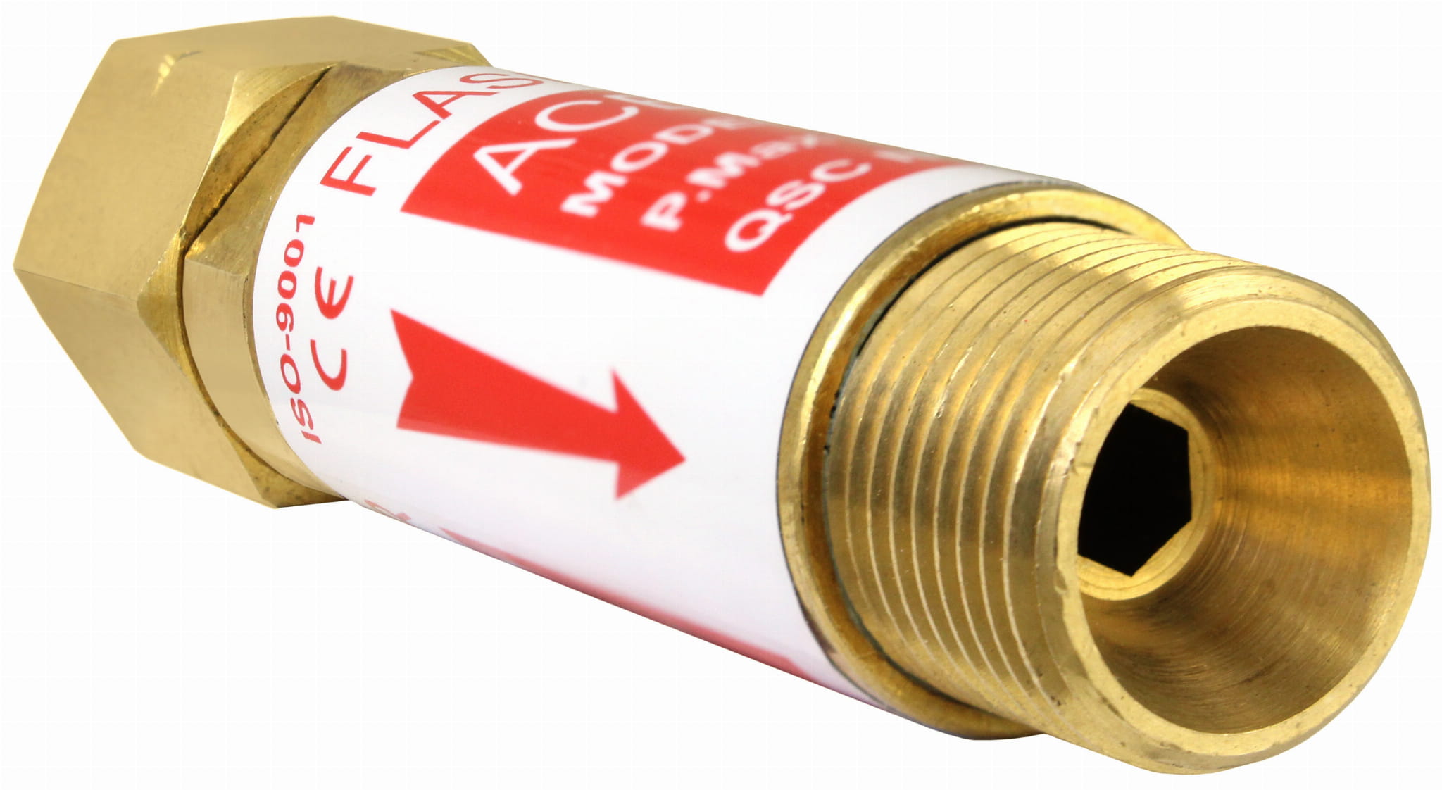 Bezpiecznik suchy montowany na wylocie reduktora acetylenowego, służy do zabezpieczania butli gazowych zasilających palnik przed skutkami cofnięcia płomienia oraz zapobiega przed cofnięciem się gazu w kierunku przeciwnym do normalnego kierunku przepływu.