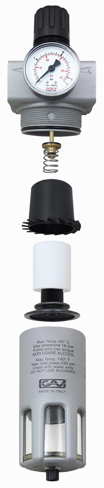Profesjonalny filtr z reduktorem FR-300 1" uznanej i cenionej na rynku włoskiej firmy GAV z spustem ręcznym.