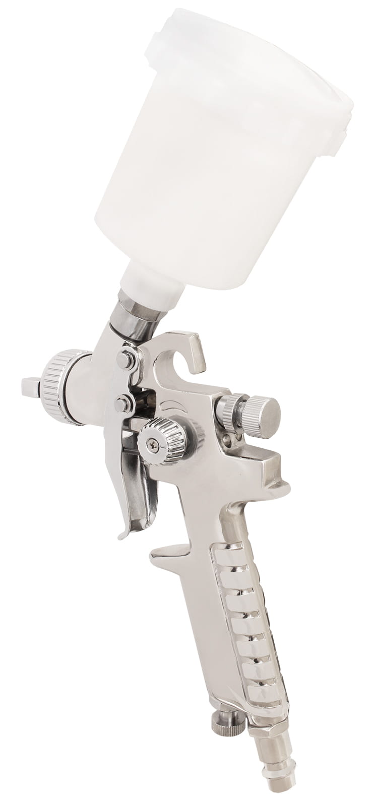 Pistolet lakierniczy MINI H2000 z dyszą 1.0mm jest pistoletem wykonanym w systemie wysokociśnieniowym HP (średnie zapotrzebowanie powietrza, wysokie ciśnienie), przy którym używamy ciśnienia 3 bar.