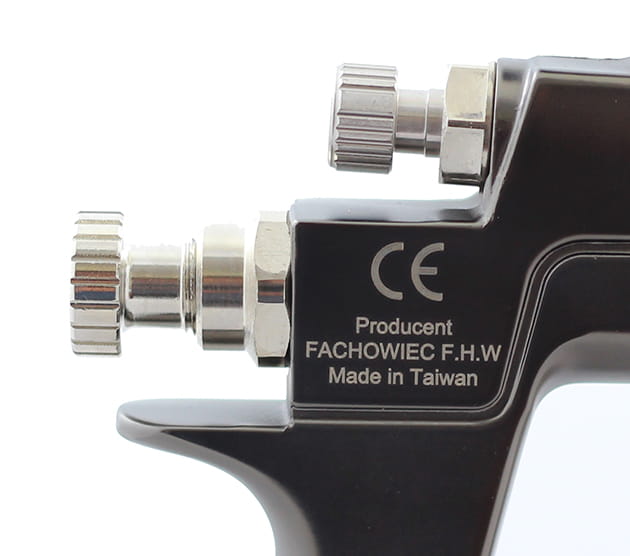 Pistolet posiada trzy regulacje: ilość powietrza zasilającego, ilość wyrzucanego materiału, szerokość strumienia.