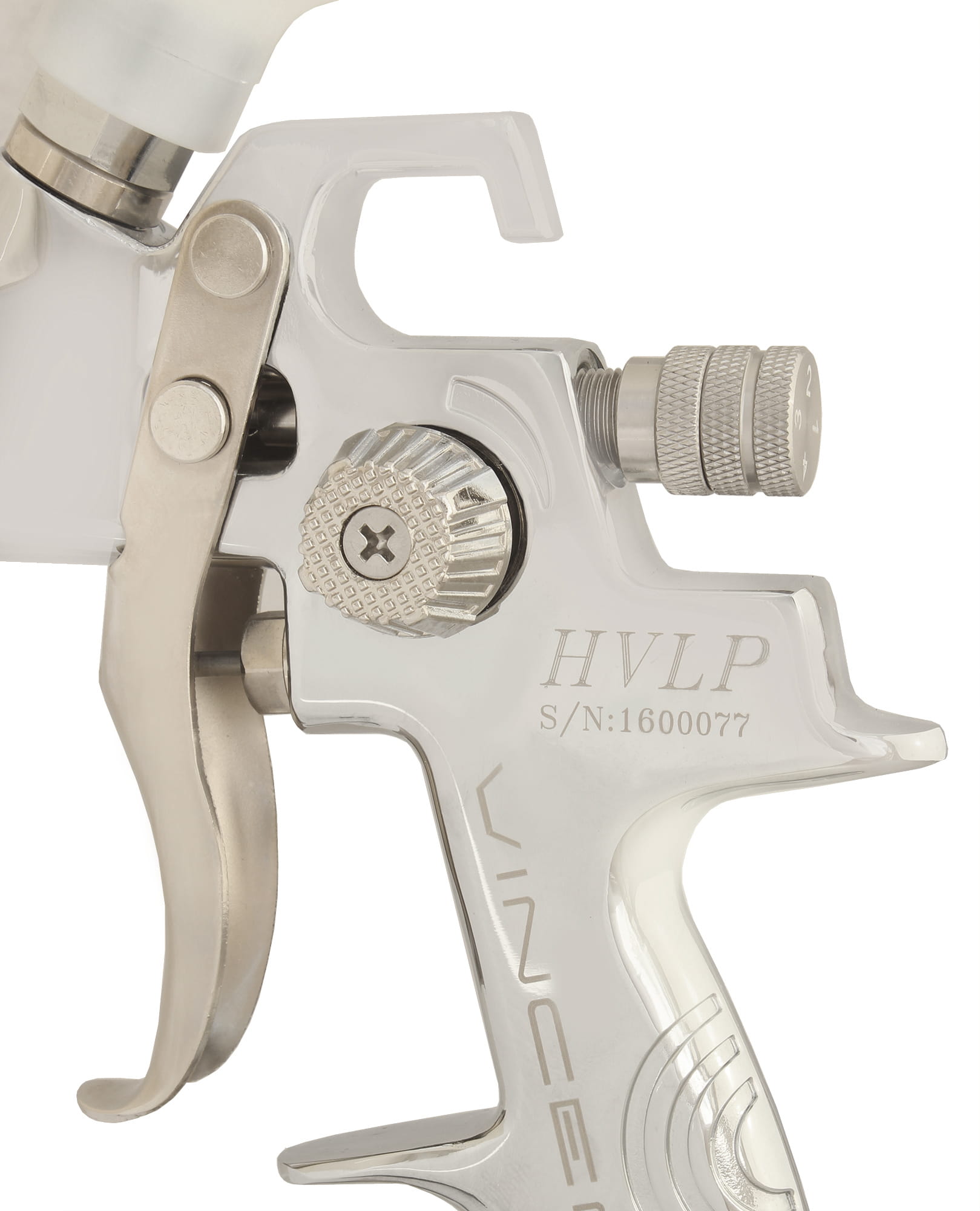 System niskociśnieniowy HVLP charakteryzuje się wyższym zużyciem powietrza w stosunku do innych systemów, wolniejszym nakładaniem materiałów natryskowych, względnie małym pyleniem. Dzięki tej technologii pistolet VINCENT uzyskuje rzeczywisty transfer lakieru na powierzchnię malowaną w granicach 65%.