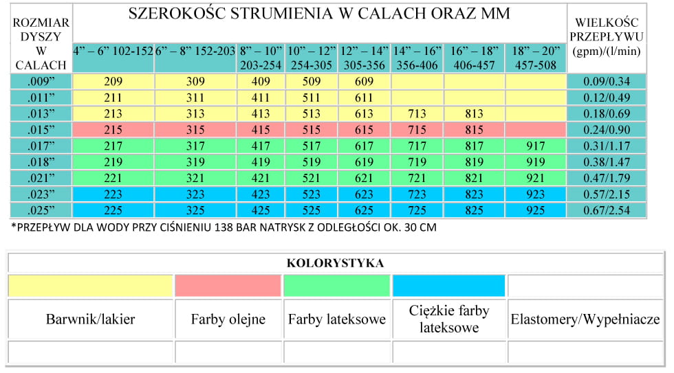 Maksymalna wydajność dyszy .017" przy 138 bar [l/min] |