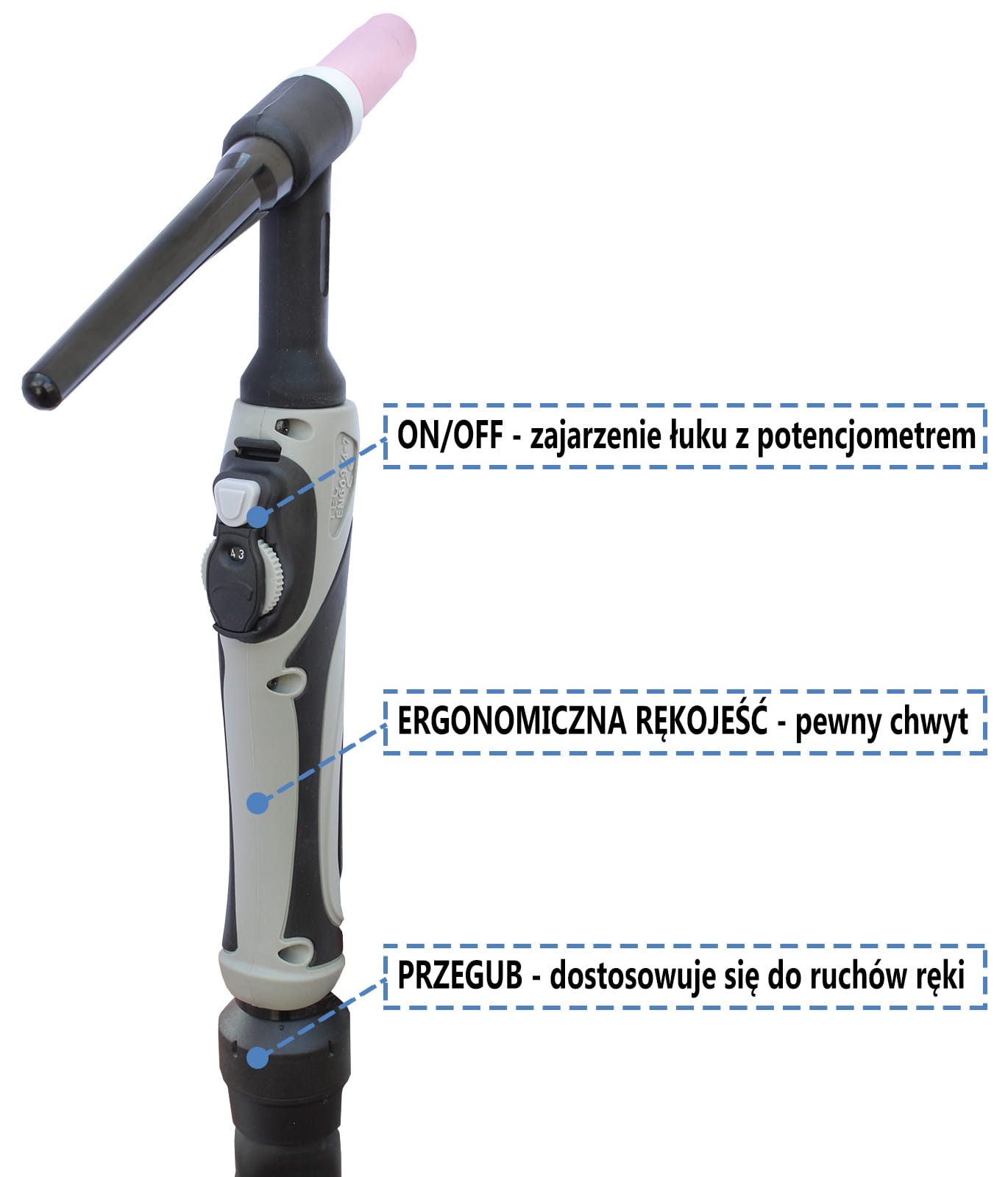 TIG AC PULS HF – a function enabling welding of thin aluminium elements. Non-contact ignition thanks to the use of an ionizer.