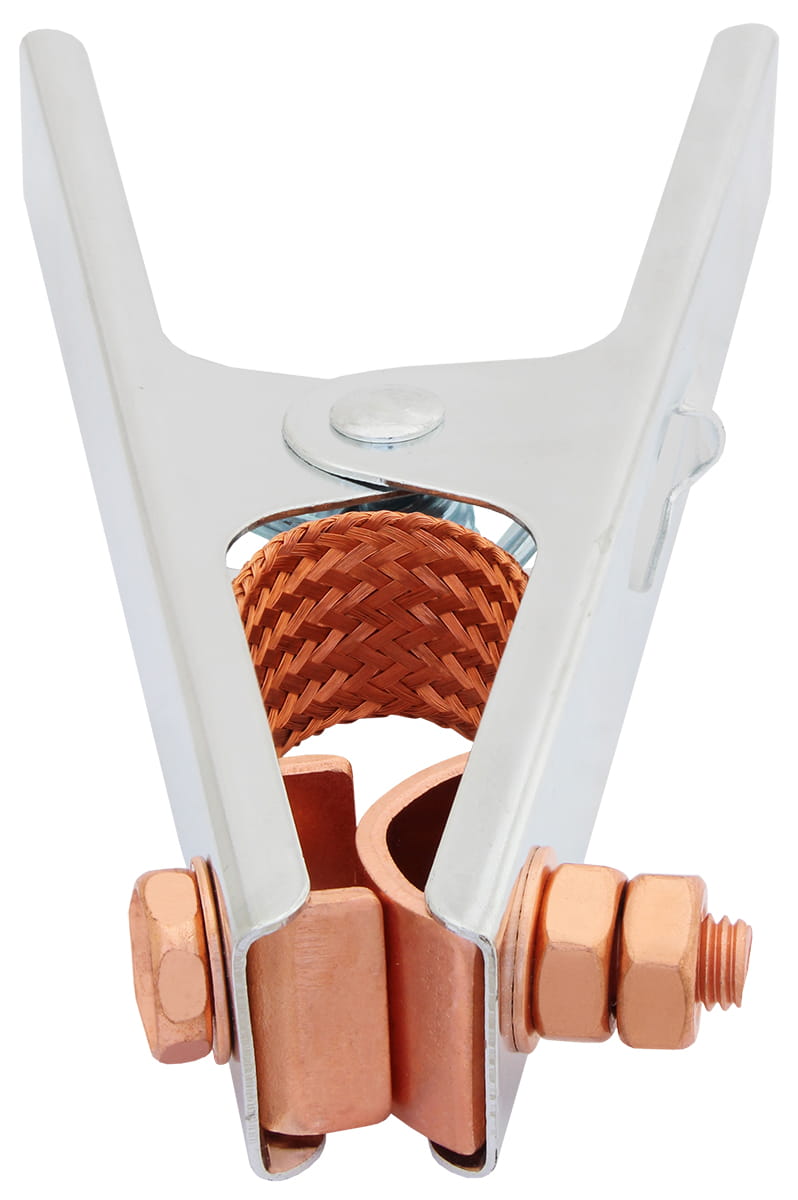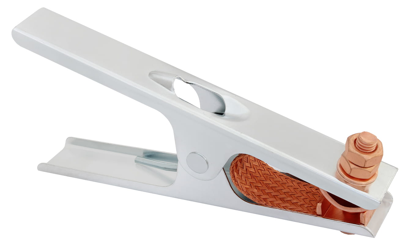 Zacisk masowy kleszczowy wykorzystywany w spawalnictwie do mocowania przewodu masowego na materiale spawanym tworząc obwód spawania. Miedziane styki na kleszczach z miedzianą plecionką oraz mocna sprężyna zapewniają dobre i pewne mocowanie na materiale spawanym oraz dobre przewodnictwo prądu.
