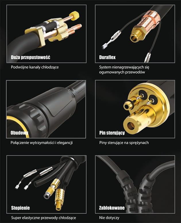 are equipped with a unified, multifunctional system enabling quick configuration according to user needs. Once selected, the welding torch can be freely configured through simple and quick changes according to the "Plug & Play" system.