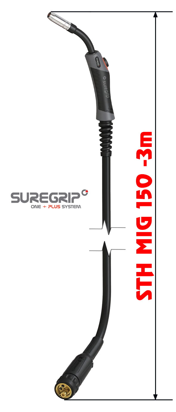 World-class welding torch PARKER SUREGRIP STH MIG 150 3m, designed for MIG/MAG welding.