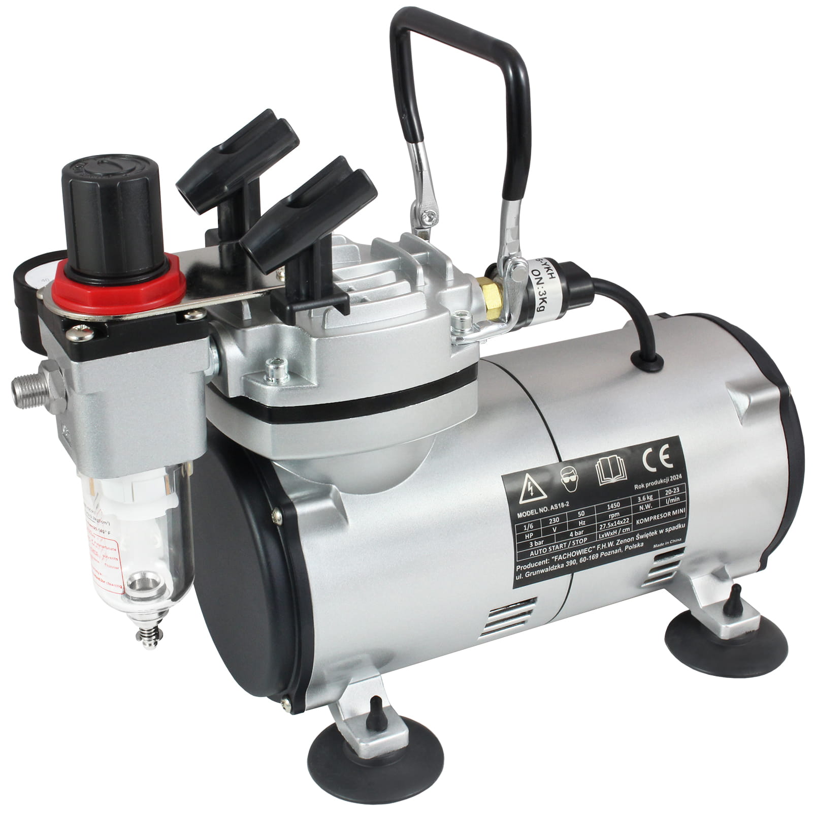 Profesjonalny zestaw mini kompresor tłokowy + aerograf z regulacją ciśnienia, to idealne narzędzie do malowania precyzyjnego.