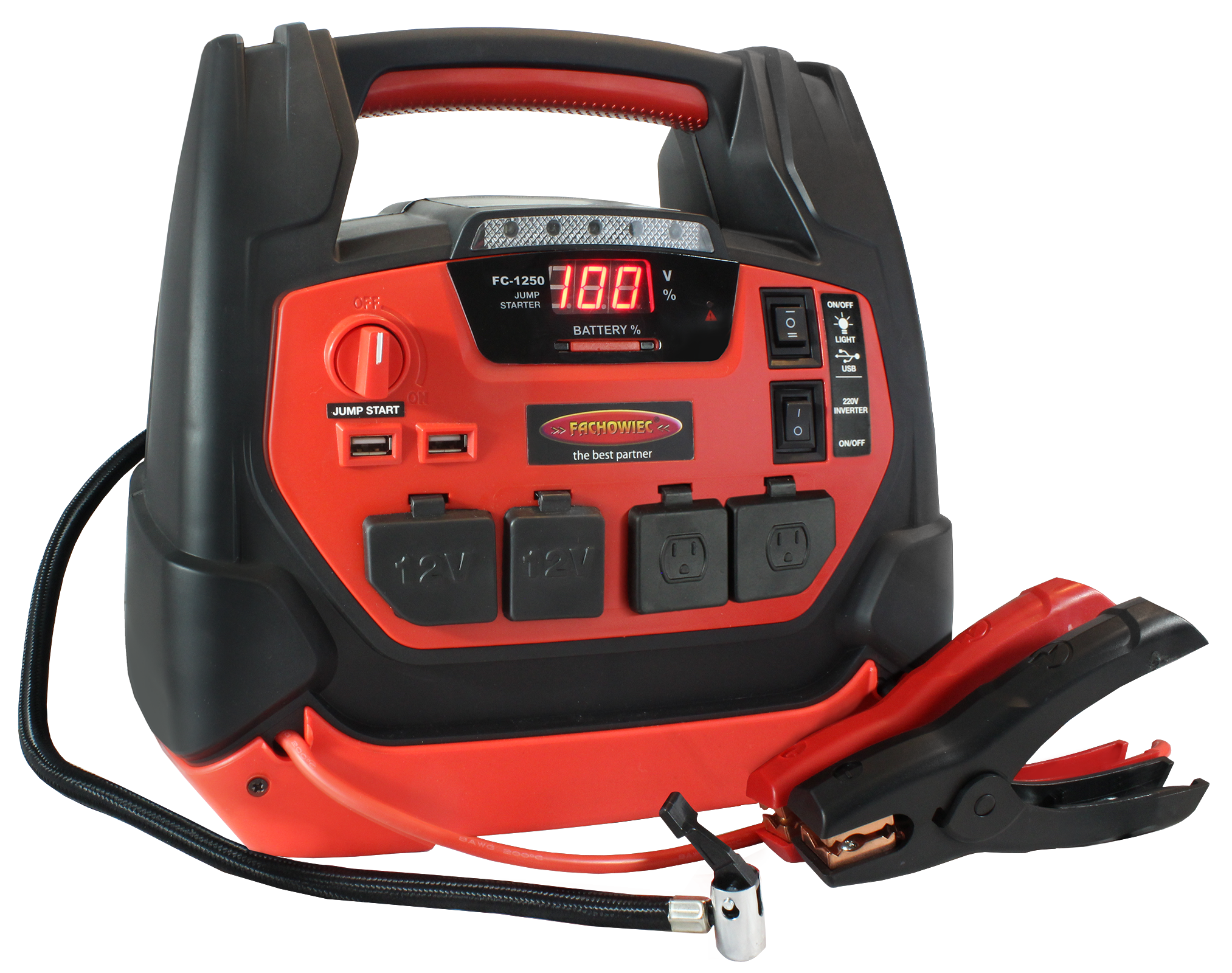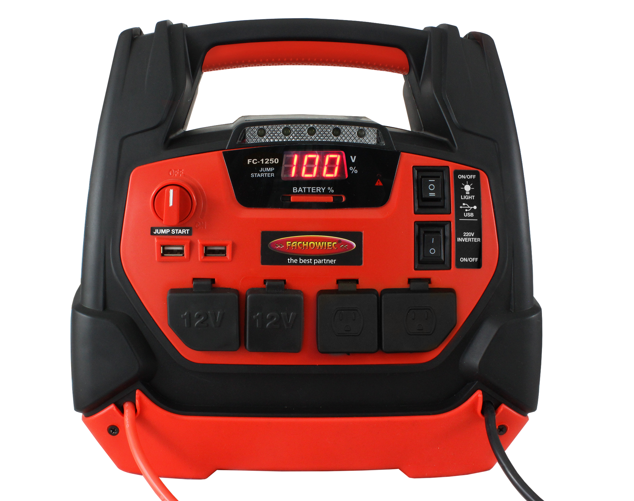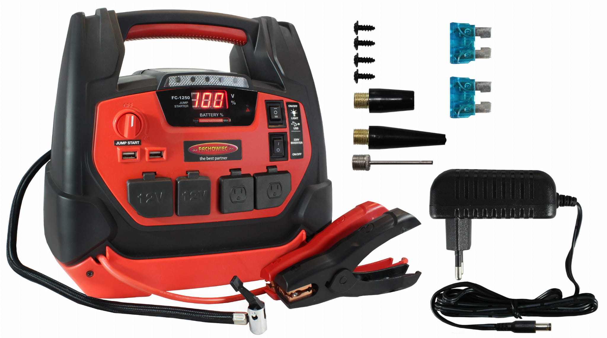 Wielofunkcyjne przenośne urządzenie rozruchowe z kompresorem FC-1250 przeznaczone jest do awaryjnego uruchamiania pojazdów spalinowych z instalacjami 12V. Urządzenie może być wykorzystywane wyłącznie do obsługi akumulatorów ołowiowo-kwasowych (WET).