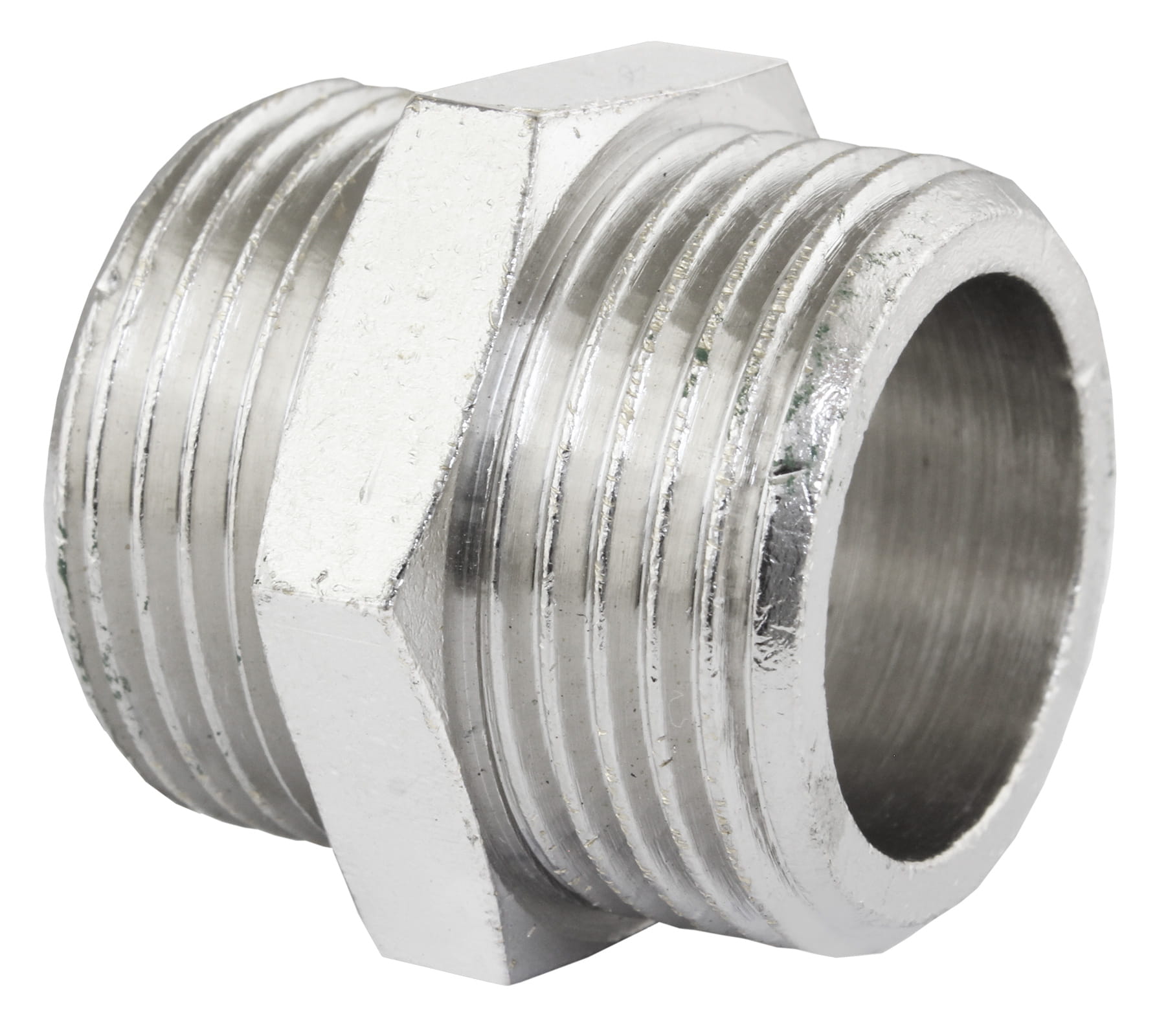 Łącznik - nypel wykonany z mosiądzu niklowanego.