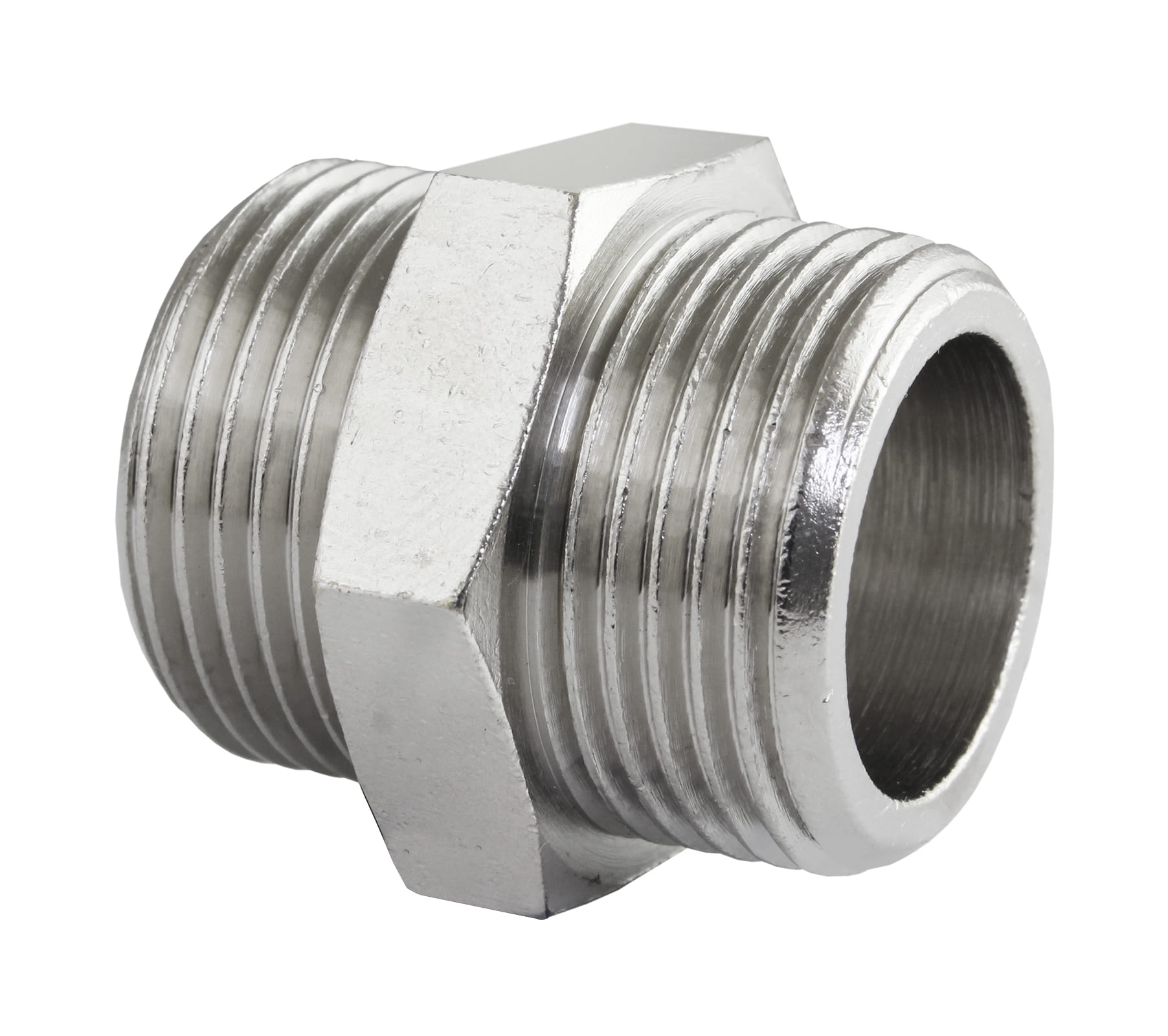 Łącznik - nypel wykonany z mosiądzu niklowanego.