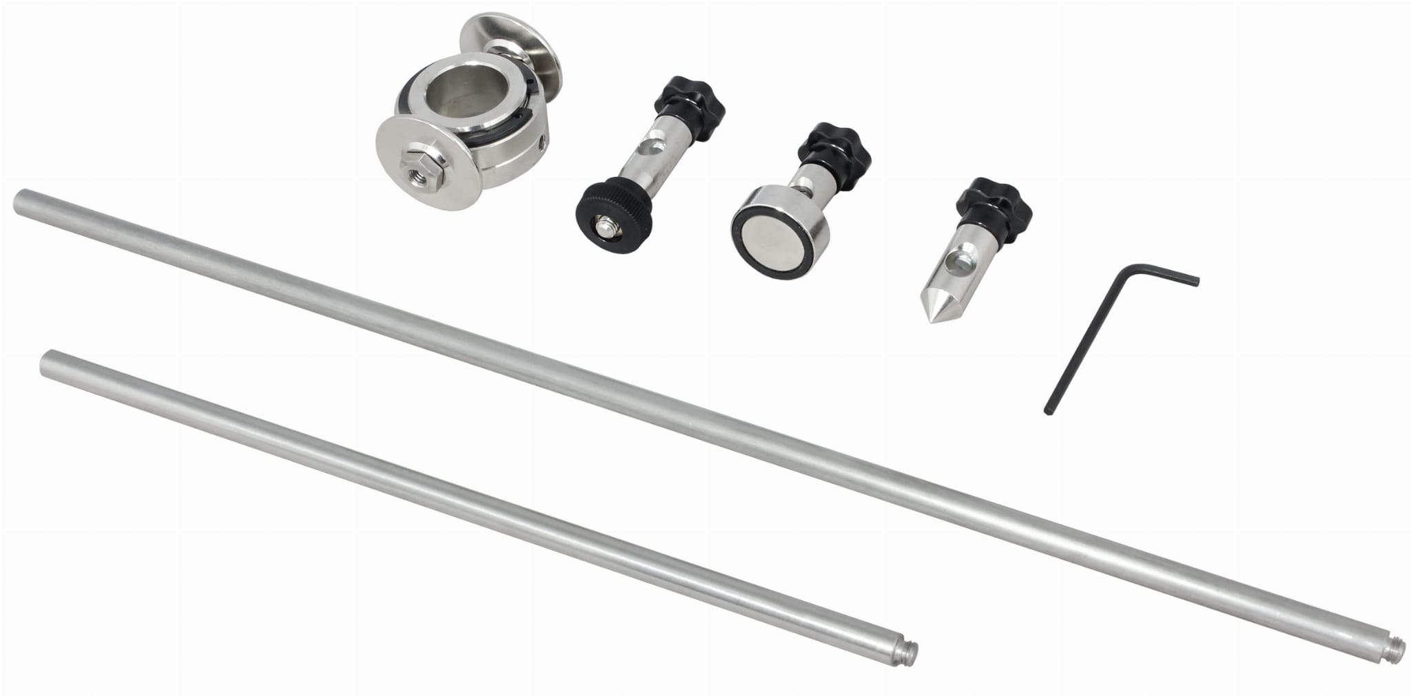 Wyposażony w wózek do zamontowania palnika, ramię i trzy punktaki, w tym jeden z magnesem.