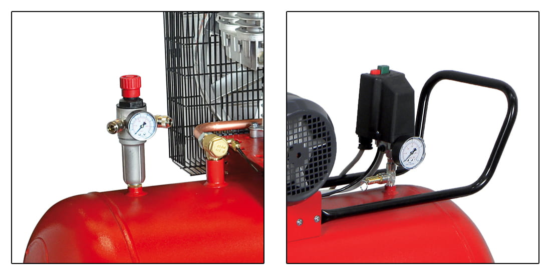 Standardowe wyposażenie sprężarki obejmuje:
