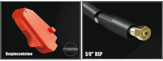 Opatentowany bezpieczny włącznik z blokadą. Zwolnienie blokady następuje dopiero po przesunięciu i wciśnięciu włącznika.