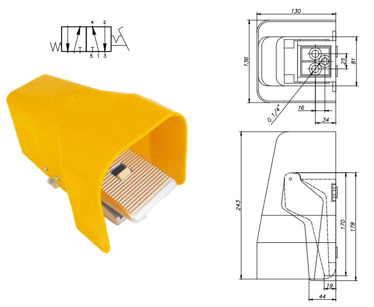 Zawór nożny, sterujący, pneumatyczny 5/2 z blokadą.