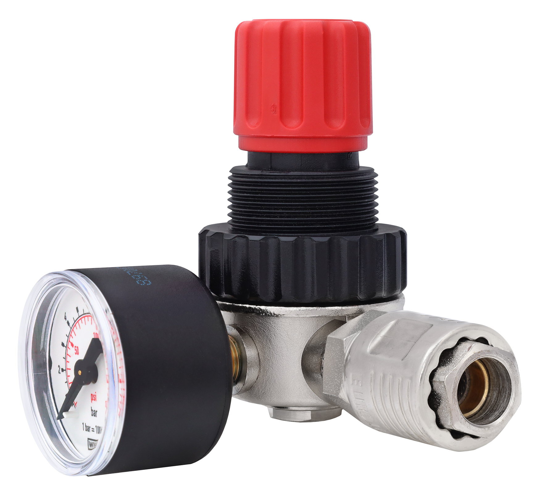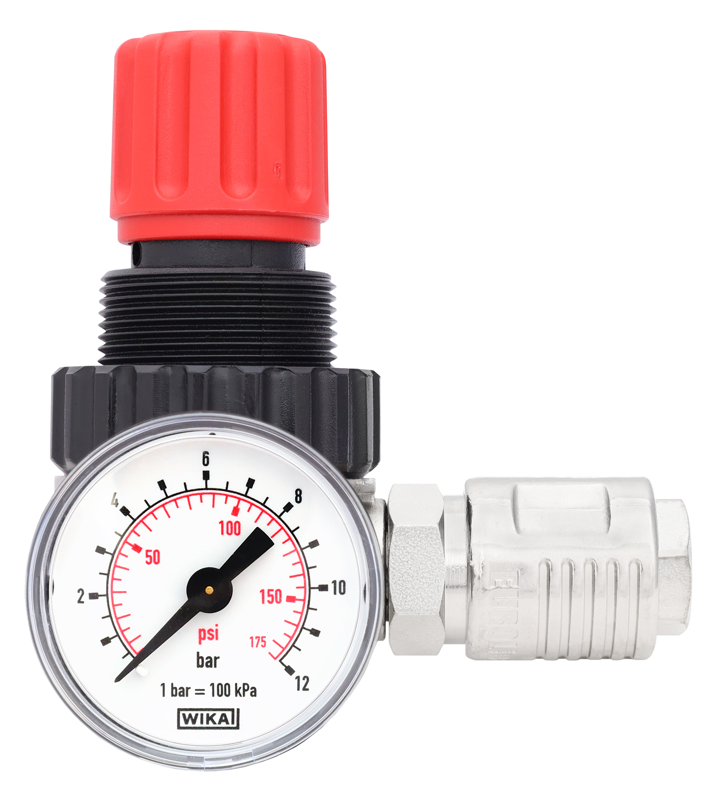 Profesjonalny reduktor ciśnienia MK 200 do sprężarki. Wyposażony w szybkozłącze.