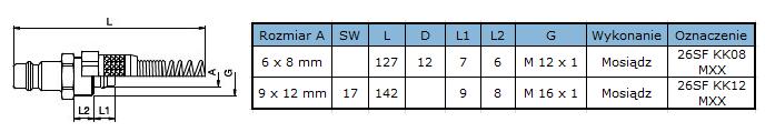 RECTUS seria 26KA z przyłączem na wąż 8x6mm z sprężyną to przemysłowe złącze z obowiązującym w Europie profilem wtyczki.