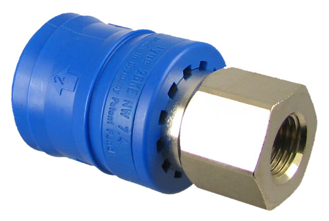 Szybkozłącze bezpieczne z gwintem wewnętrznym 1/4" z funkcją rozłączania bezciśnieniowego.