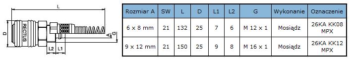 RECTUS seria 26KA z przyłączem na wąż 8x6mm z sprężyną to przemysłowe szybkozłącze z obowiązującym w Europie profilem wtyczki.