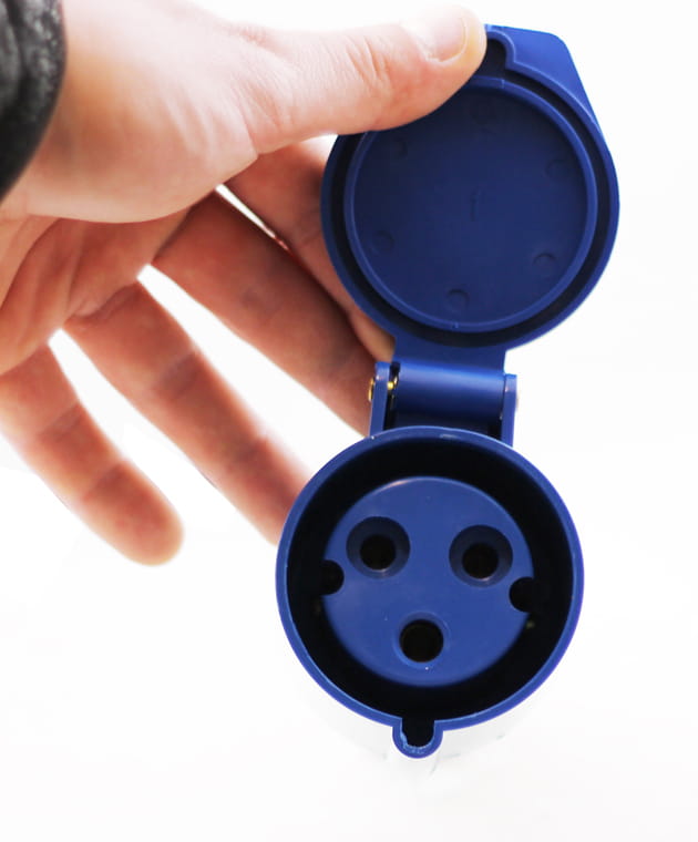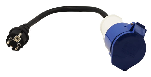 Adapter używany do podłączenia urządzeń przemysłowych z wtyczką CEE 32A, zasilanych napięciem 230V, do gniazdek 16A.