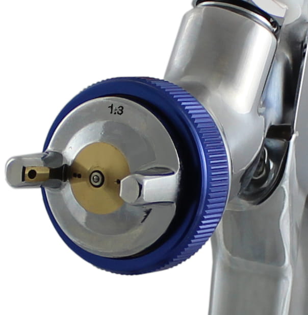 - materiału (poprzez regulację cofnięcia iglicy, ustawia się ilość farby mieszanej z powietrzem),